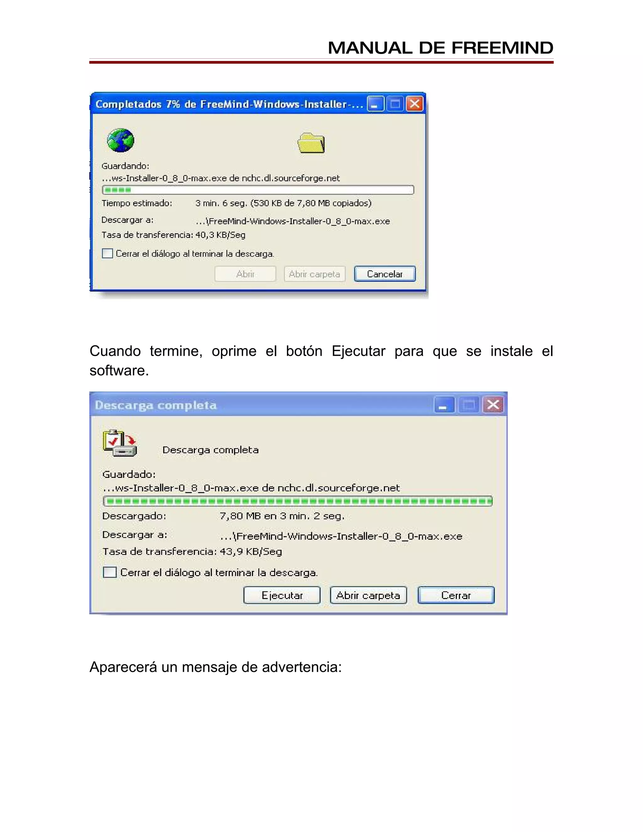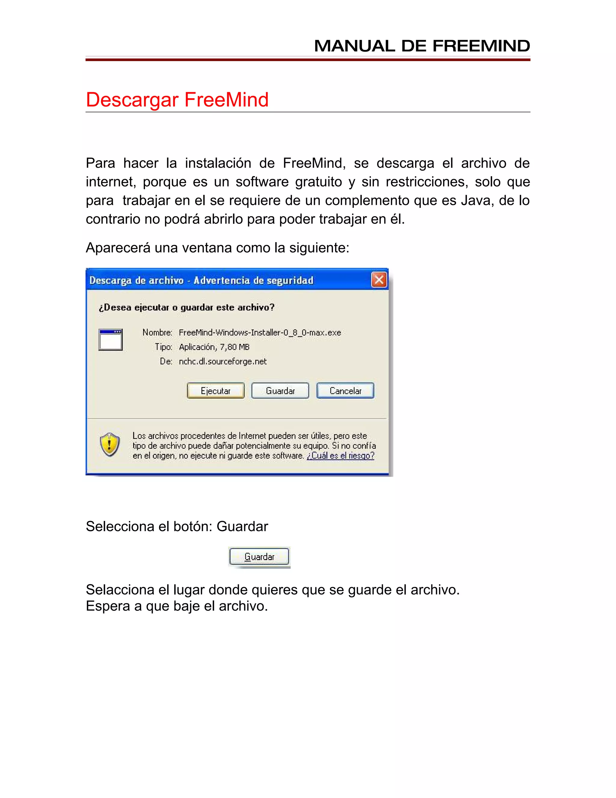 El documento proporciona instrucciones para descargar e instalar el software de mapa mental gratuito FreeMind. Explica cómo crear un mapa mental básico agregando nodos y editando el texto, y también cómo cambiar el formato y estilo de los nodos y líneas.
