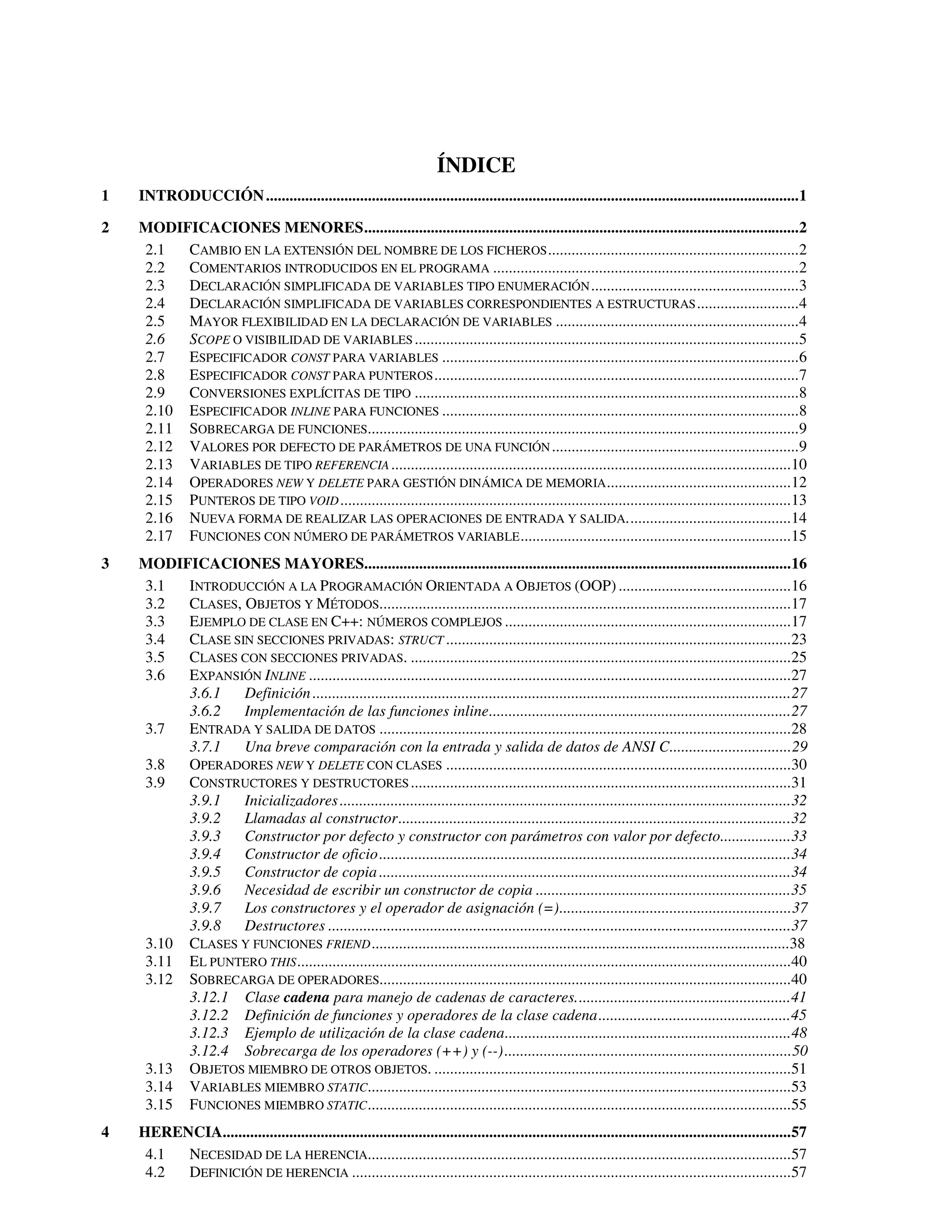 Este documento describe las modificaciones menores y mayores introducidas en C++ con respecto a C. Entre las menores se encuentran cambios en la extensión de los archivos, nuevos tipos de comentarios, declaraciones simplificadas de variables enumeradas y estructuradas, y mayor flexibilidad en la declaración de variables. Las mayores incluyen la introducción de la programación orientada a objetos mediante el uso de clases, herencia, polimorfismo y otras características.