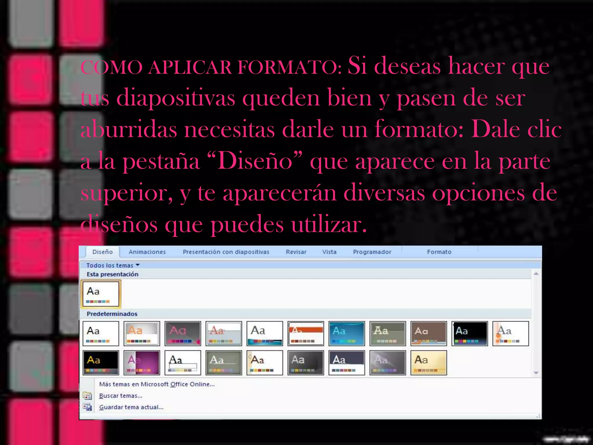 Este documento proporciona instrucciones sobre cómo aplicar formato, cambiar el diseño y colores, insertar imágenes y aplicar animaciones en diapositivas de PowerPoint. Explica cómo guardar presentaciones utilizando las opciones "Guardar como" o "Guardar" y las teclas de acceso rápido Ctrl+G. El objetivo es enseñar a los usuarios a crear diapositivas atractivas y cómo guardar su trabajo en PowerPoint.