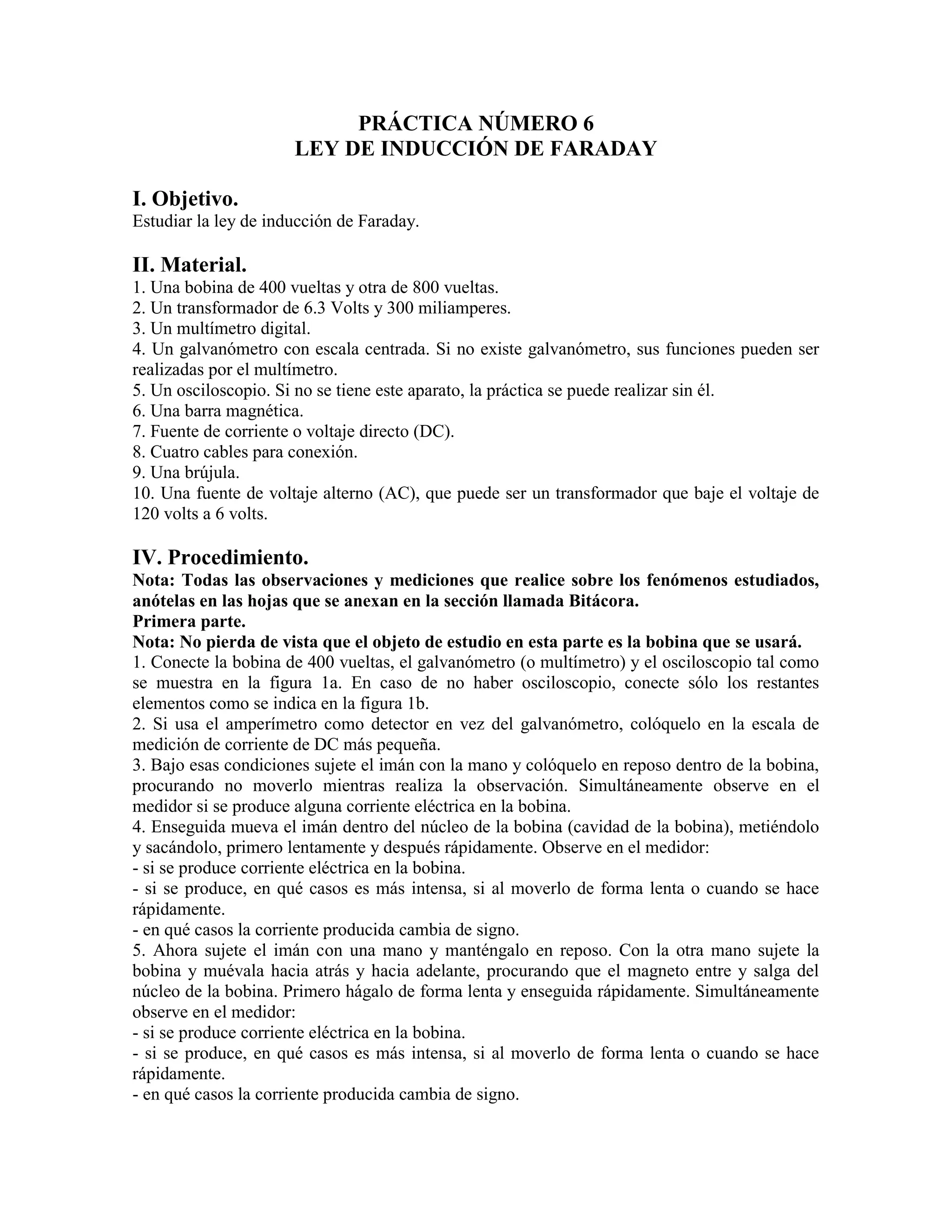 Este documento presenta el procedimiento de una práctica de electromagnetismo sobre la ley de inducción de Faraday. La práctica incluye dos partes: 1) estudiar la inducción de corriente en una bobina al mover un imán dentro y fuera de ella, y 2) estudiar la inducción de voltaje en una bobina secundaria al aplicar voltaje a una bobina primaria. Los resultados muestran que se induce corriente cuando el flujo magnético a través de la bobina varía, ya sea moviendo el imán o el voltaje