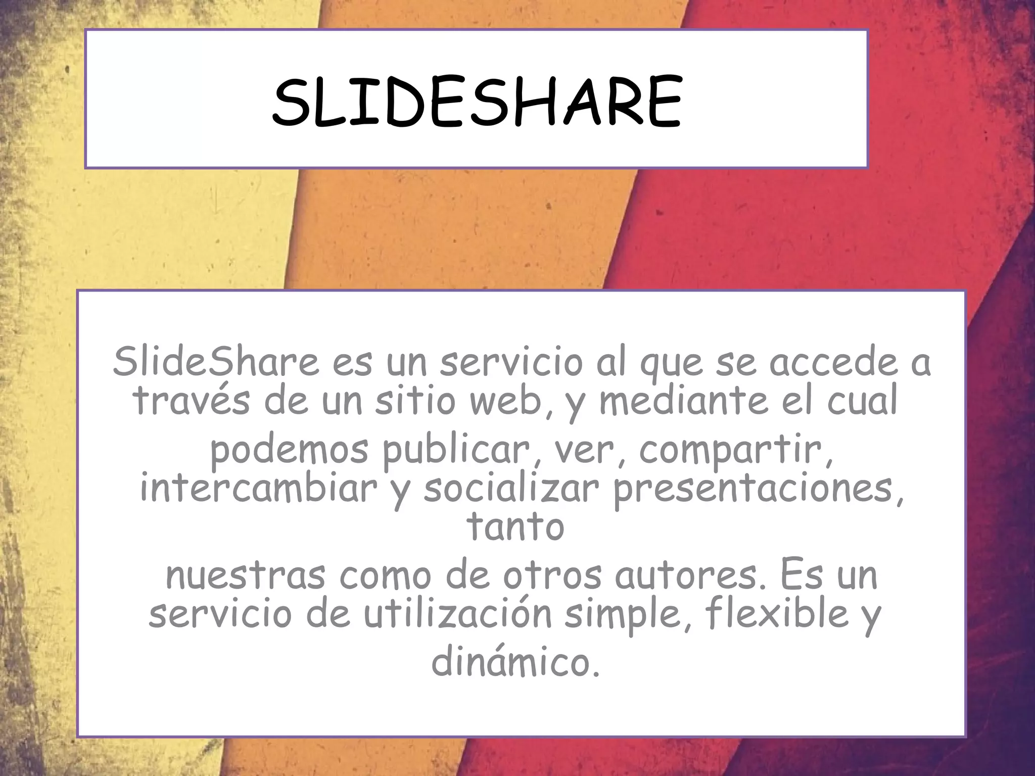 SlideShare es un servicio web para publicar, ver y compartir presentaciones. Los usuarios deben registrarse en la página web de SlideShare para acceder a la herramienta. Una vez registrados, los usuarios pueden subir sus presentaciones al sitio seleccionándolas desde su computadora y agregando un título, descripción y etiquetas antes de publicarlas.