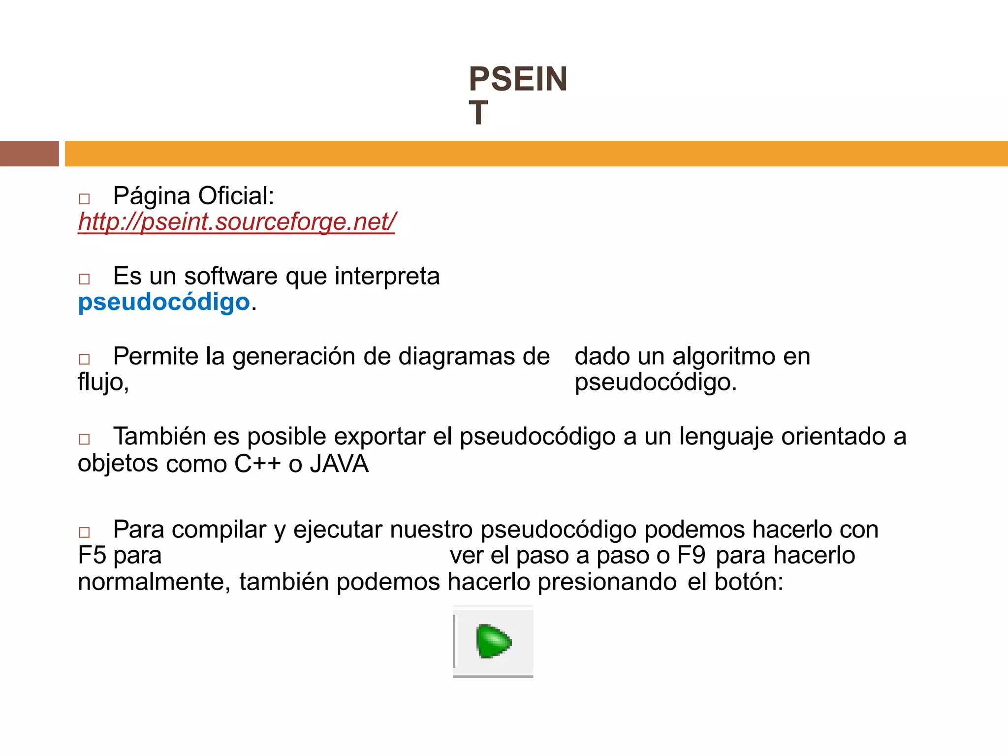 Pseint es un software que permite interpretar pseudocódigo y generar diagramas de flujo, así como exportar código a lenguajes como C++ o Java. El documento detalla tipos de datos, expresiones, estructuras de control (condicionales y repetitivas), arreglos, y la forma de realizar anotaciones. Además, se aborda la ejecución de instrucciones secuenciales y la captura de errores mediante opciones en las estructuras de control.