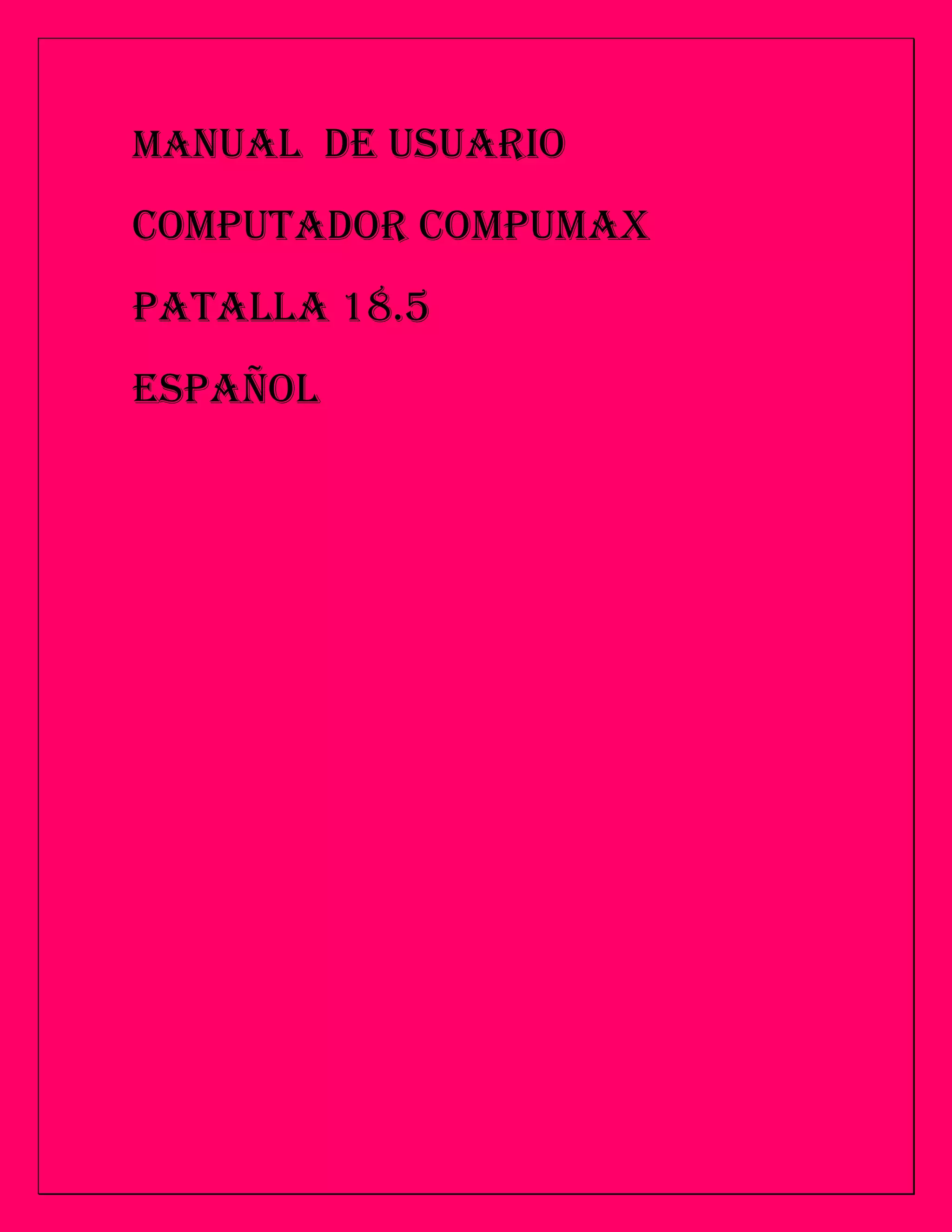 Este manual proporciona instrucciones sobre el uso seguro y la instalación básica de una computadora CompuMax con pantalla de 18.5 pulgadas. Incluye especificaciones técnicas, advertencias de seguridad como no introducir objetos en los orificios o derramar líquidos, y recomendaciones como ubicarla en un lugar ventilado y libre de polvo e interferencias.