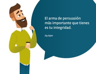 El documento es un manual de ventas que enfatiza que vender es ayudar a los clientes a tomar decisiones correctas. Se abordan conceptos fundamentales como la persuasión, la comunicación efectiva y el manejo de objeciones, además de resaltar la importancia de la integridad y la impresión inicial. Se presentan técnicas y principios de ventas, incluyendo el modelo AIDA y la idea de que el cierre de una venta es también un acto de ayuda al cliente.