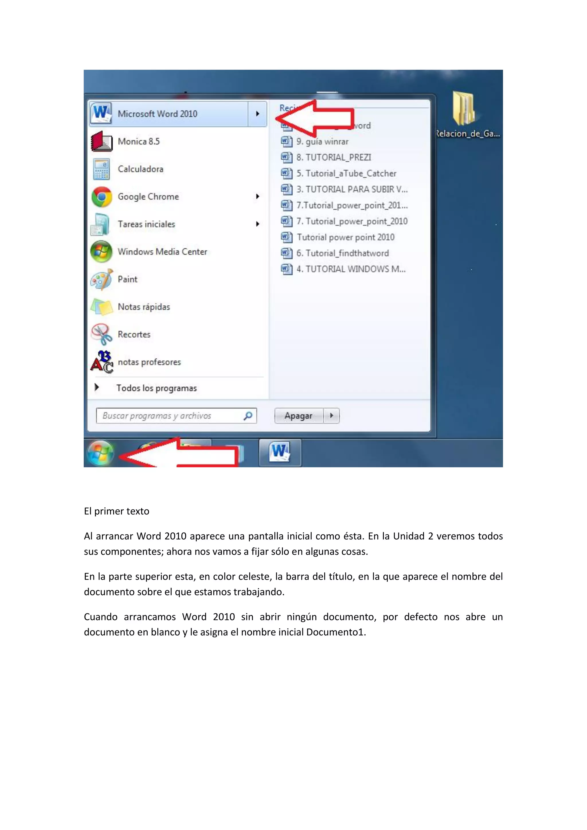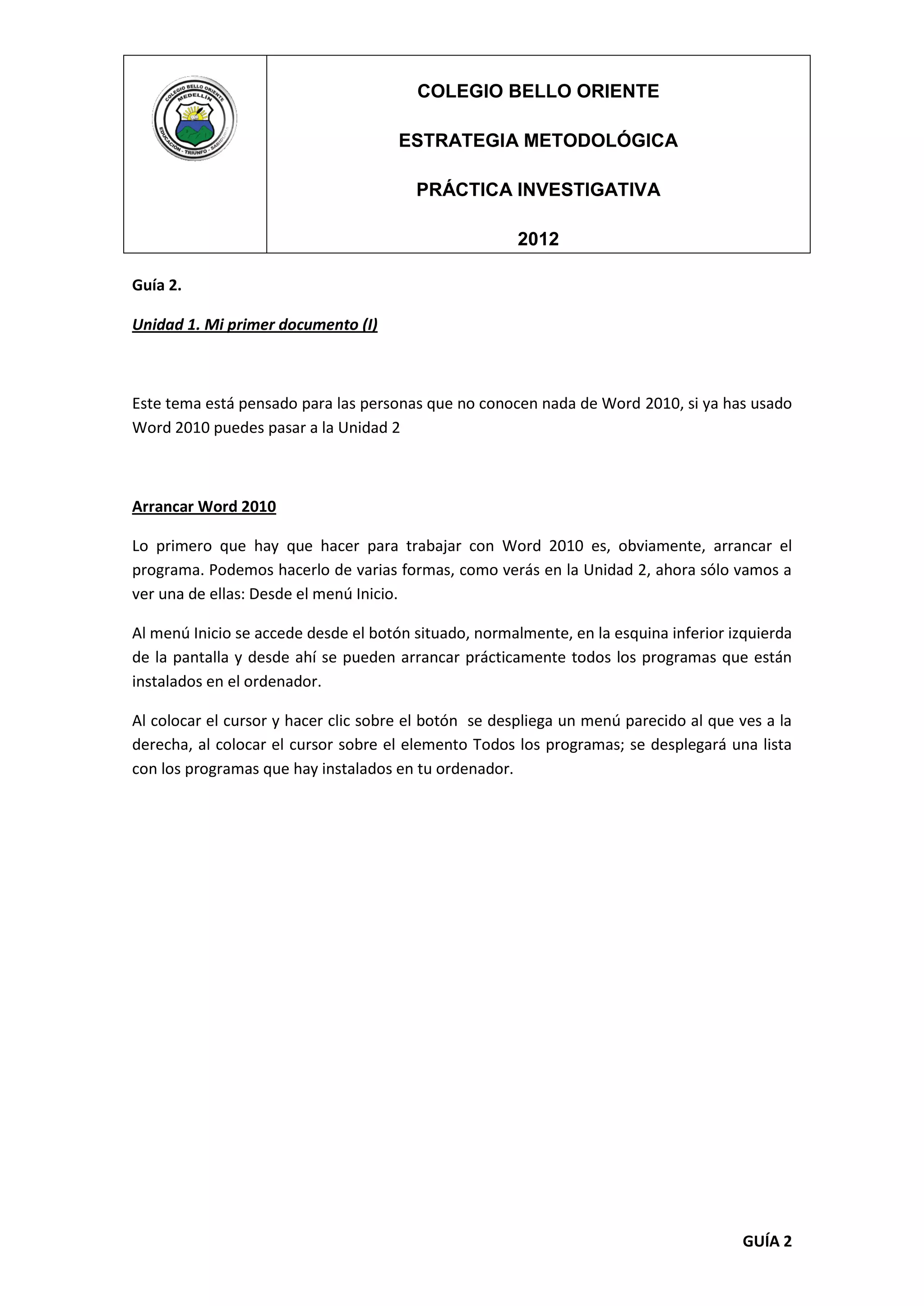 Este documento proporciona instrucciones sobre cómo usar Microsoft Word 2010/2007 de forma básica. Explica cómo iniciar Word, crear y guardar un primer documento, moverse dentro de un documento usando el teclado y ratón, y cómo cerrar tanto el documento como el programa Word. También brinda consejos sobre cómo corregir errores y realizar pequeñas ediciones en un documento. El documento está dividido en unidades que cubren temas como los elementos básicos de la interfaz de usuario de Word y cómo realizar ediciones y búsquedas simples