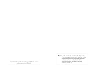 Este manual proporciona información sobre compresores herméticos y sistemas de refrigeración. Explica los componentes clave de un circuito de refrigeración básico y cómo funciona. Además, describe los tipos de compresores, incluidos los factores que influyen en la selección como el elemento de control, la temperatura de evaporación y el tipo de refrigerante. El manual ofrece orientación sobre el diagnóstico y reemplazo de compresores.