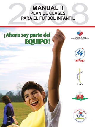 Este documento presenta un manual para escuelas de fútbol que contiene 40 clases diseñadas para