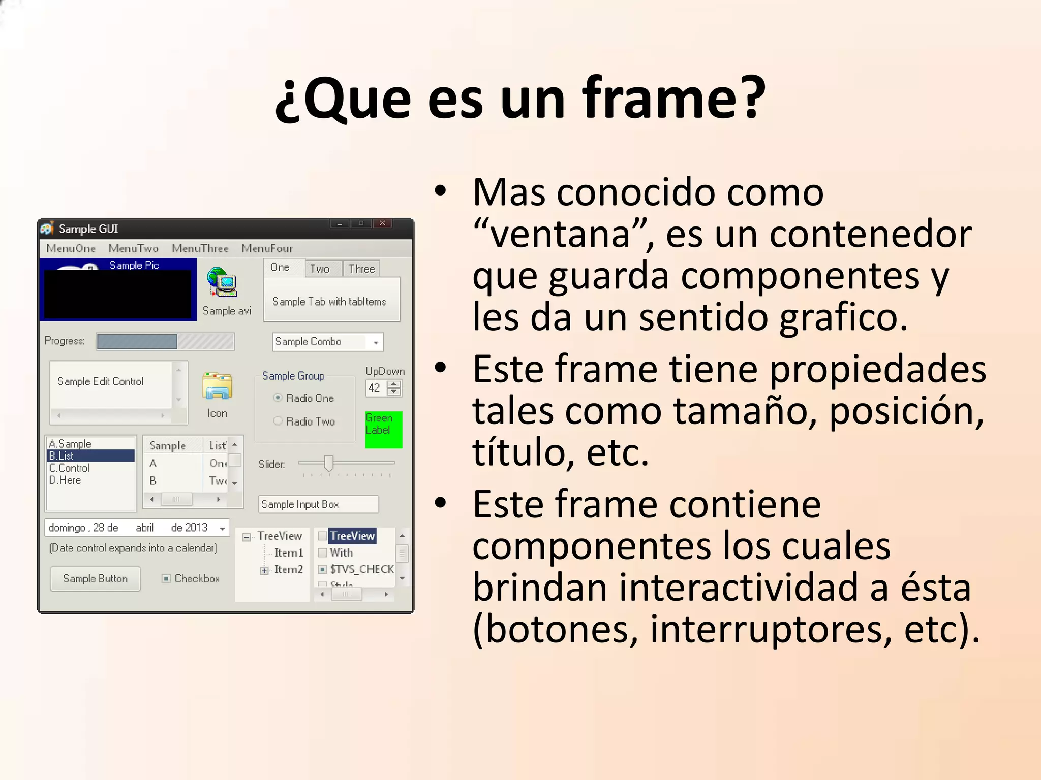 Este documento describe cómo crear interfaces gráficas en Java usando WindowBuilder Pro de Eclipse. Explica qué es un frame, cómo crear uno usando WindowBuilder, y algunos componentes básicos como JLabel, JButton, JTextField y cómo agregarlos a un frame. También cubre cómo mostrar y destruir un frame, y métodos útiles como mostrar mensajes.