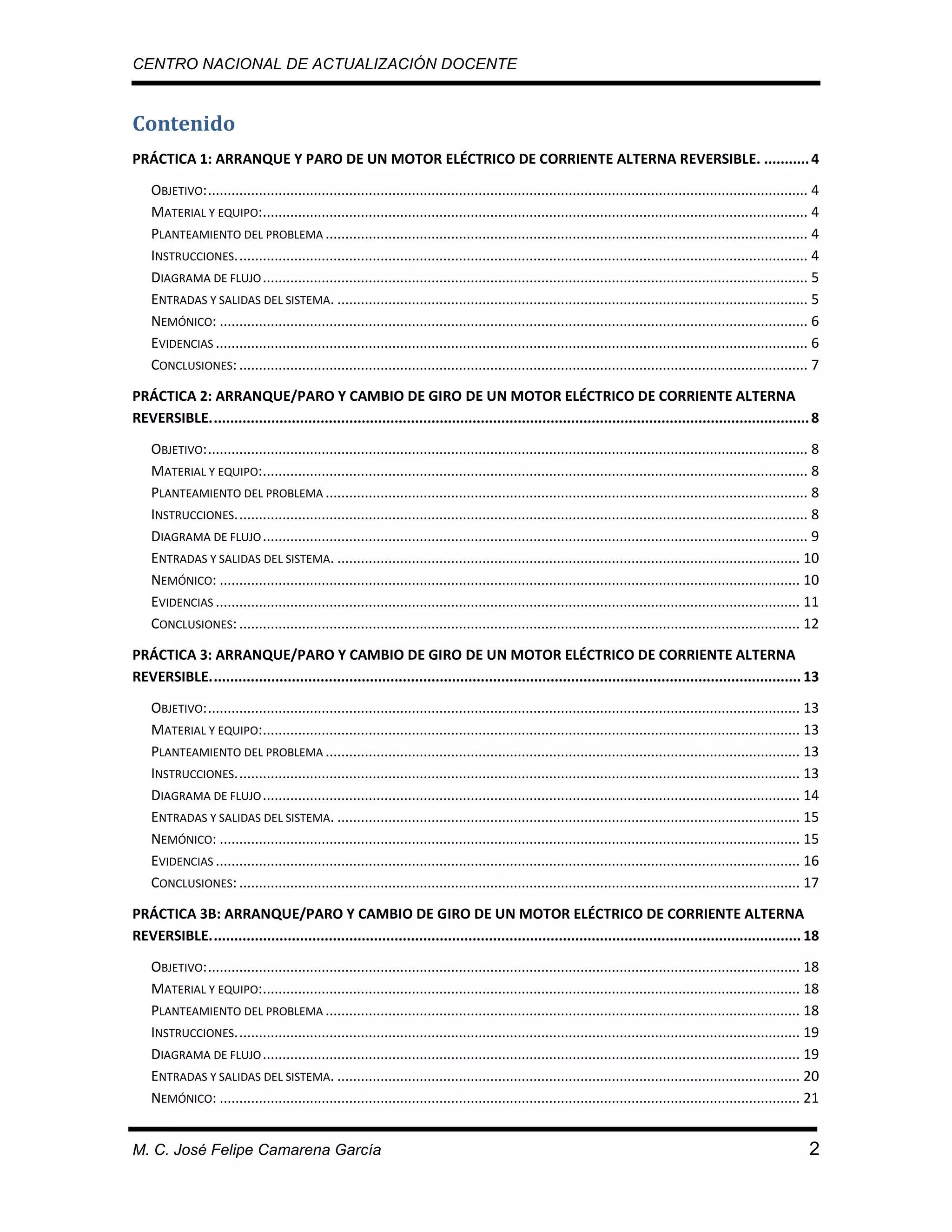 El documento es un manual de prácticas del Centro Nacional de Actualización Docente que abarca el diseño y control de motores eléctricos y bandas transportadoras utilizando un PLC de marca Omron. Incluye diversas prácticas detalladas, cada una con objetivos, materiales, planteamientos, instrucciones, diagramas de flujo, entradas y salidas del sistema, así como conclusiones sobre su funcionamiento. Las prácticas están enfocadas en el arranque, paro y cambio de giro de motores eléctricos, así como el control de bandas transportadoras en sistemas automatizados.