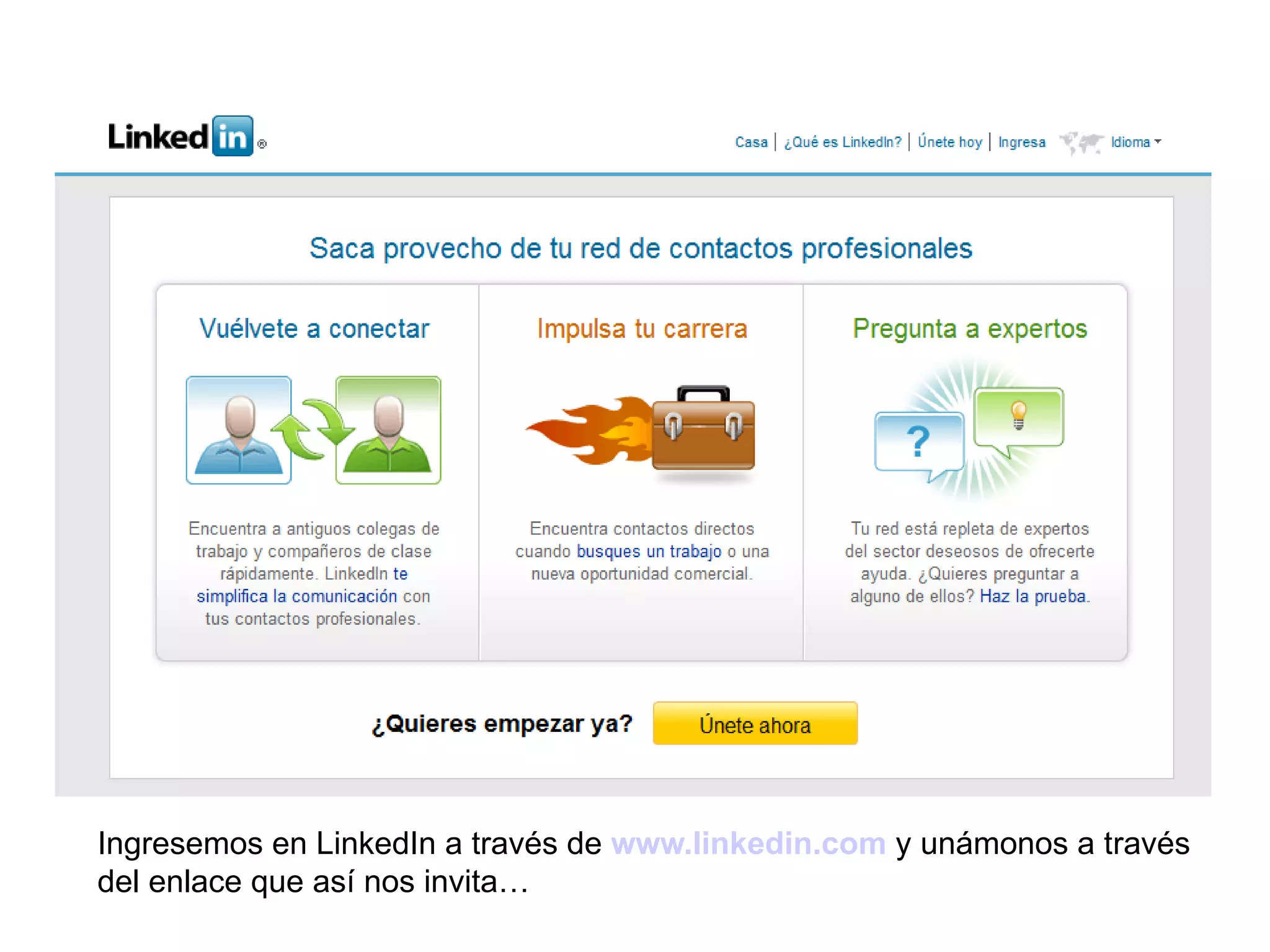 Este documento proporciona un minitutorial sobre cómo unirse y utilizar la red social profesional LinkedIn. Explica cómo crear una cuenta, completar un perfil con experiencia laboral y educación, buscar contactos y empleos, y comunicarse con otros profesionales a través de grupos y mensajes.