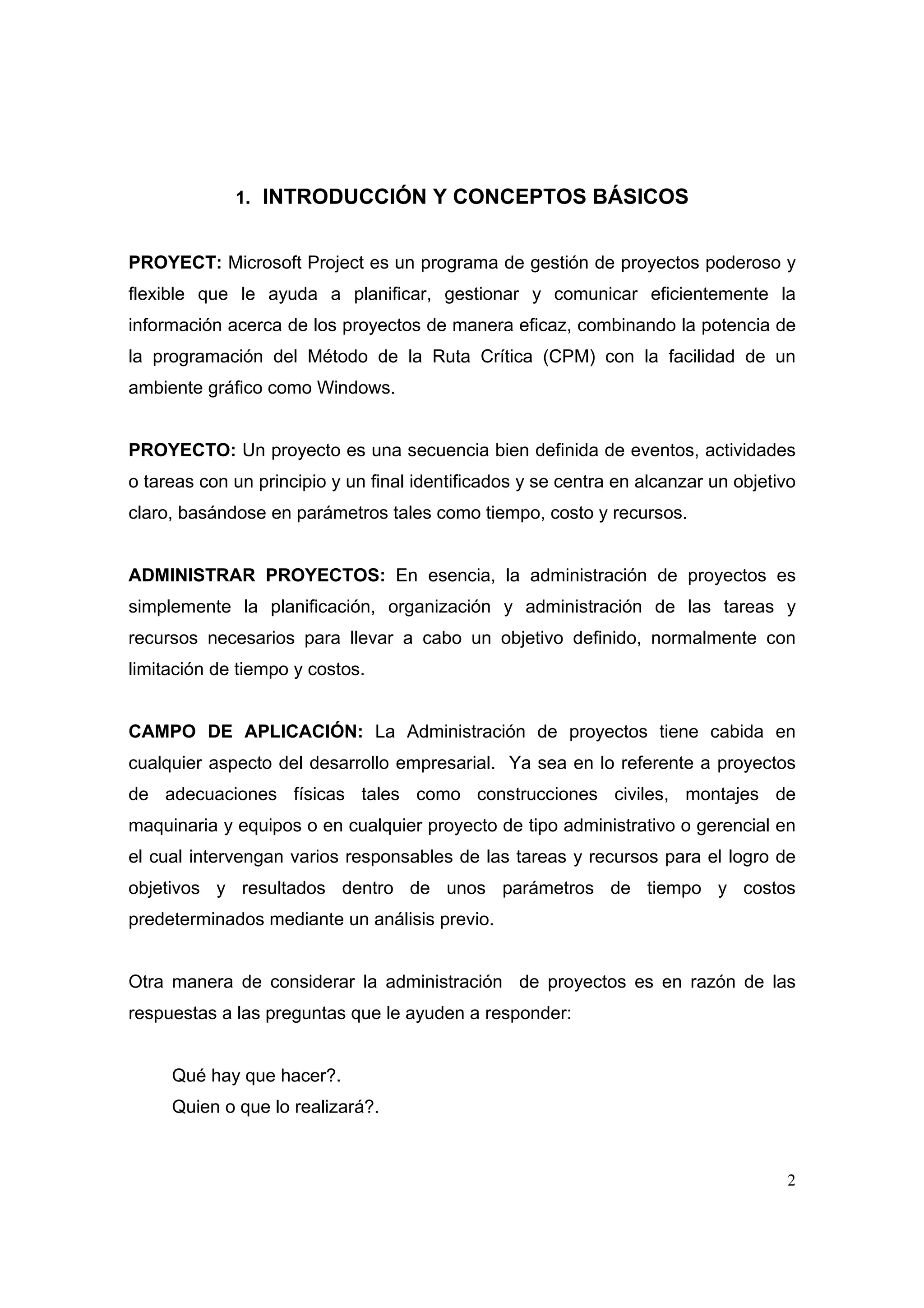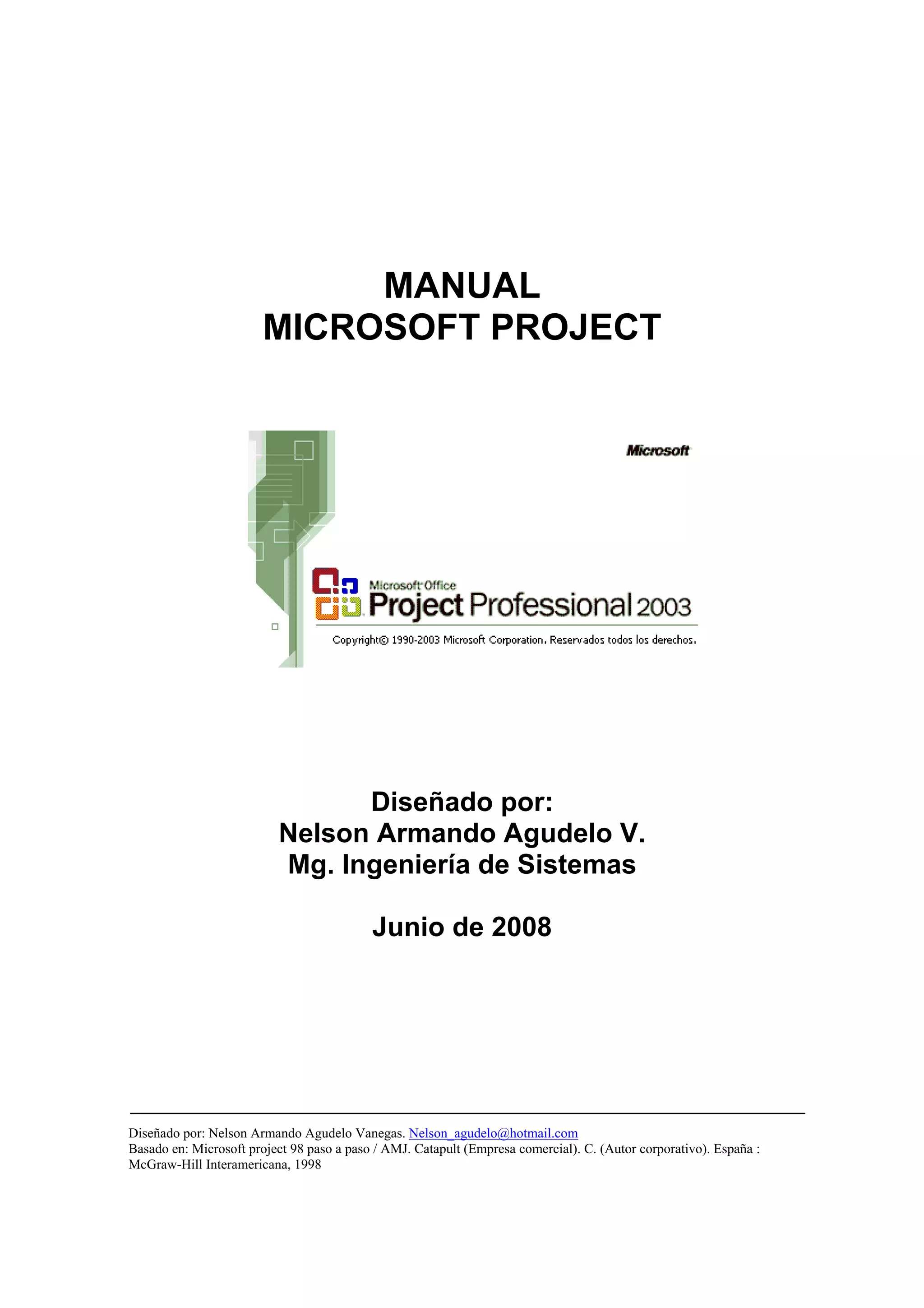Este manual proporciona instrucciones sobre cómo usar el software de gestión de proyectos Microsoft Project. Explica conceptos clave como tareas, calendarios, recursos y sus relaciones, y describe las fases típicas de un proyecto. También cubre temas como la creación y administración de proyectos, la generación de informes y la evaluación posterior de los proyectos. El manual sirve como guía completa para la utilización efectiva de Microsoft Project.