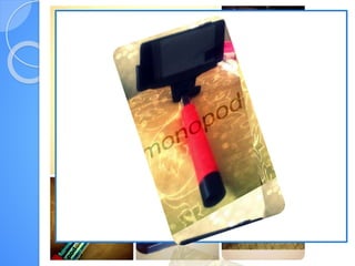 El documento presenta un manual de uso para un monopod diseñado para facilitar la toma de selfies. Explica que el monopod es un bastón con Bluetooth que se conecta al celular para controlar la cámara de forma remota. Detalla las partes internas y externas, el proceso de encendido del Bluetooth, la instalación del celular en el soporte y los pasos para tomar una selfie usando los botones del monopod.