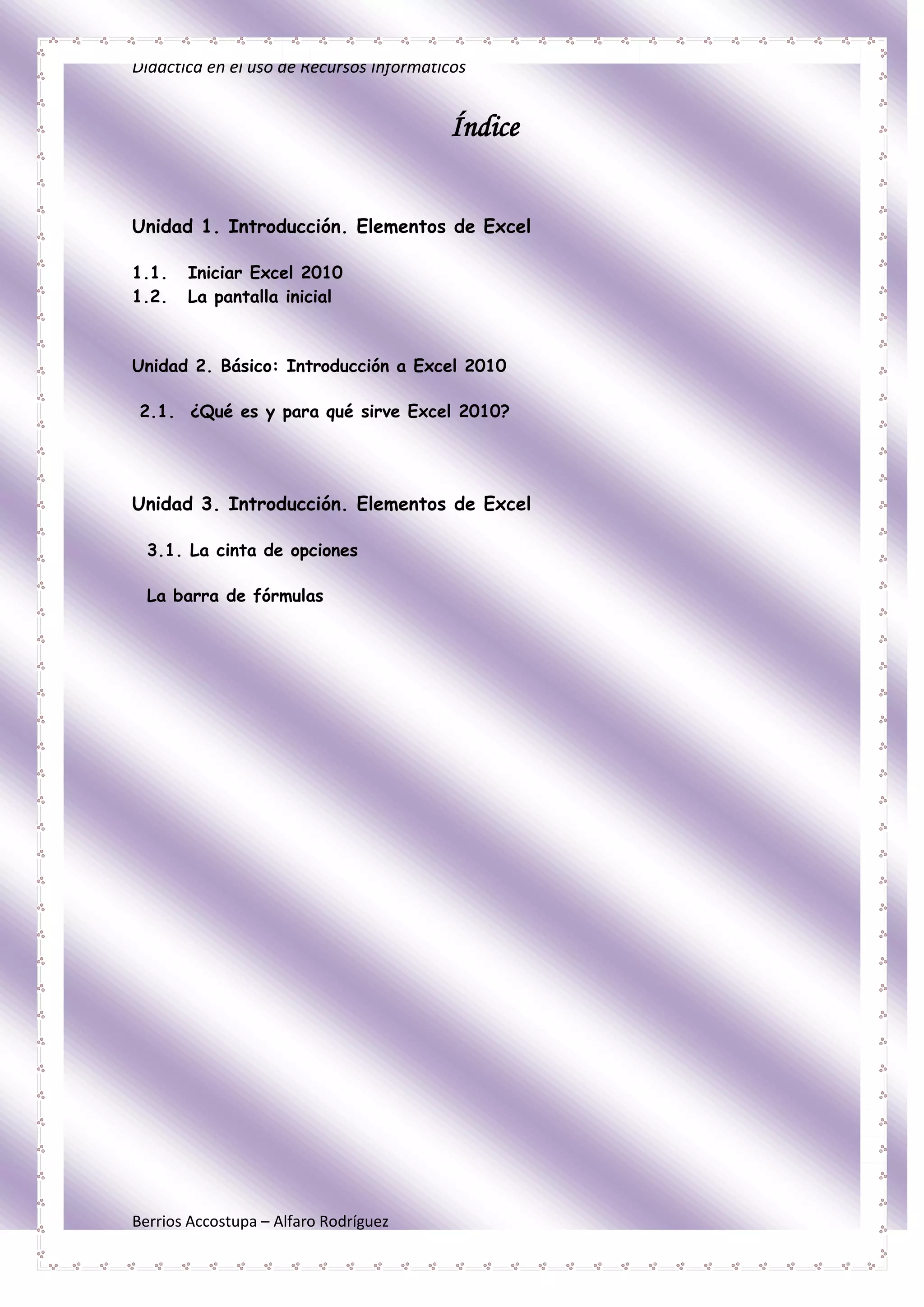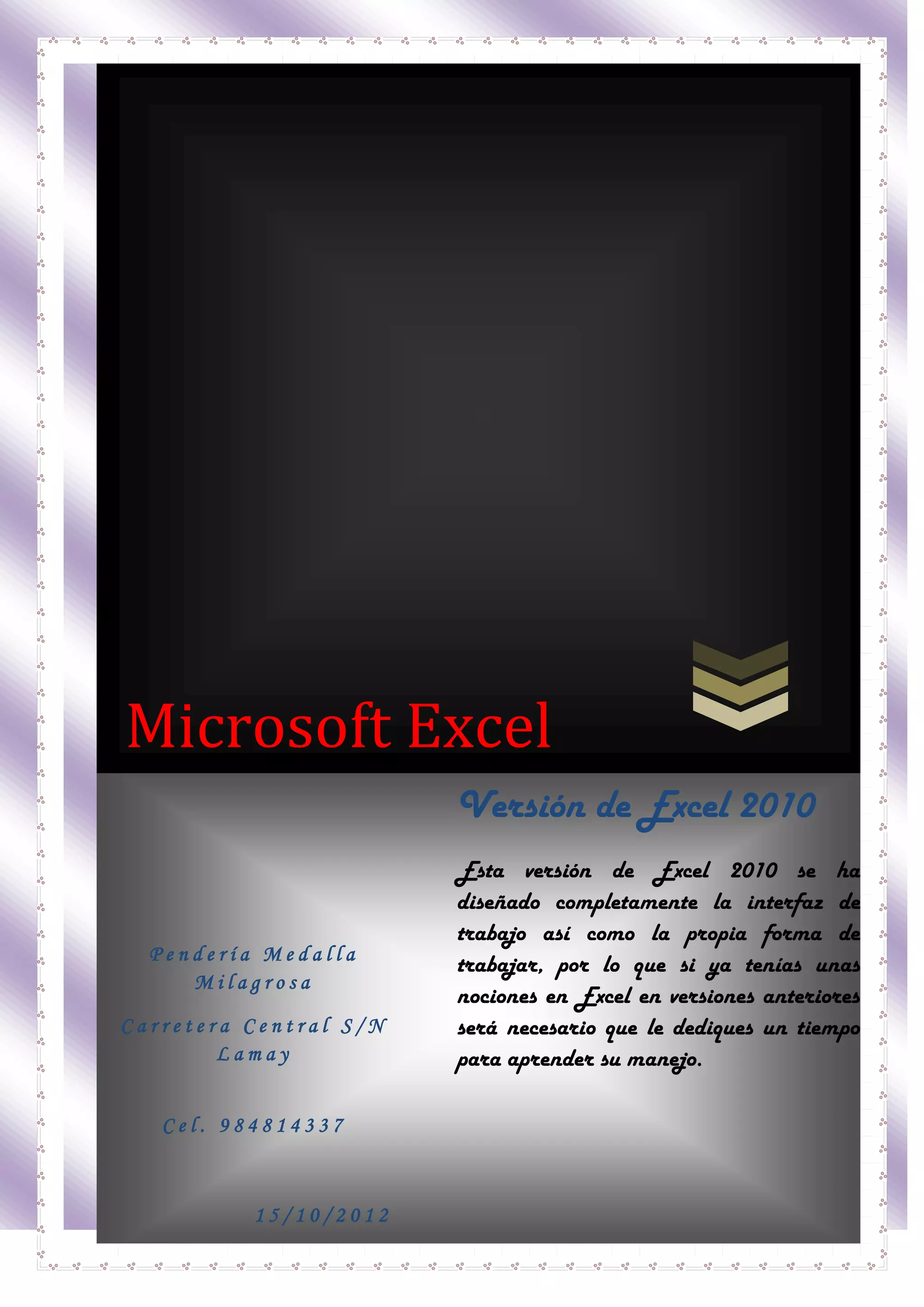 Este documento presenta una introducción al uso de Microsoft Excel 2010. Explica que Excel es un programa de hoja de cálculo que permite realizar cálculos y modelizar situaciones. Luego, describe brevemente los elementos básicos de la interfaz de Excel como la cinta de opciones, la barra de fórmulas y la cuadrícula principal. Finalmente, introduce los temas que se abordarán en las siguientes unidades como iniciar Excel, sus componentes y usos básicos.