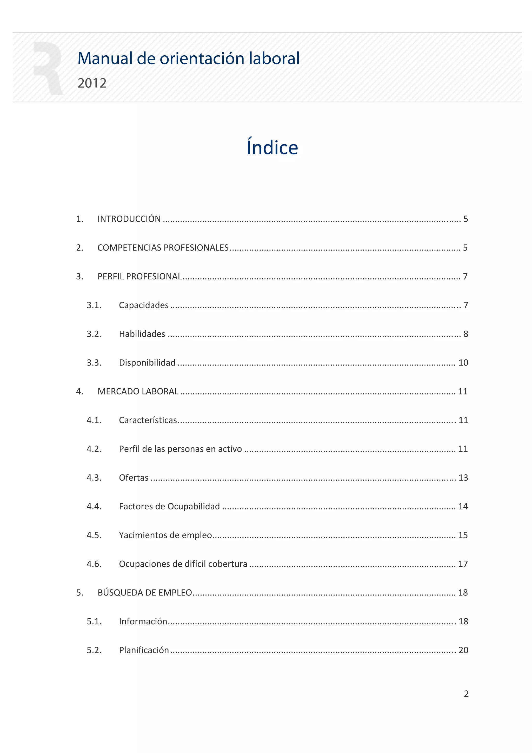 Este documento es un manual de orientación laboral que provee información sobre competencias profesionales, perfil profesional, mercado laboral y búsqueda de empleo. Explica las competencias necesarias para la búsqueda de trabajo como conocimientos técnicos, habilidades, y actitudes positivas. También describe cómo analizar las propias capacidades, habilidades e intereses para definir un objetivo profesional, y los pasos para planificar y realizar con éxito una búsqueda de empleo incluyendo herramientas, canales y hab