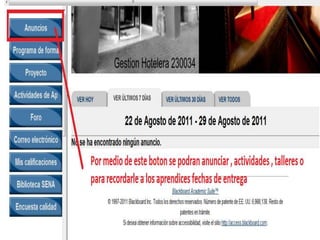Black Board es una plataforma de aprendizaje en línea que se utiliza para la formación titulada. Permite a los instructores crear cursos digitales con contenido como archivos, tareas, exámenes y foros de discusión para que los estudiantes puedan acceder de forma remota y flexible. La plataforma ofrece herramientas para administrar cursos de manera efectiva.