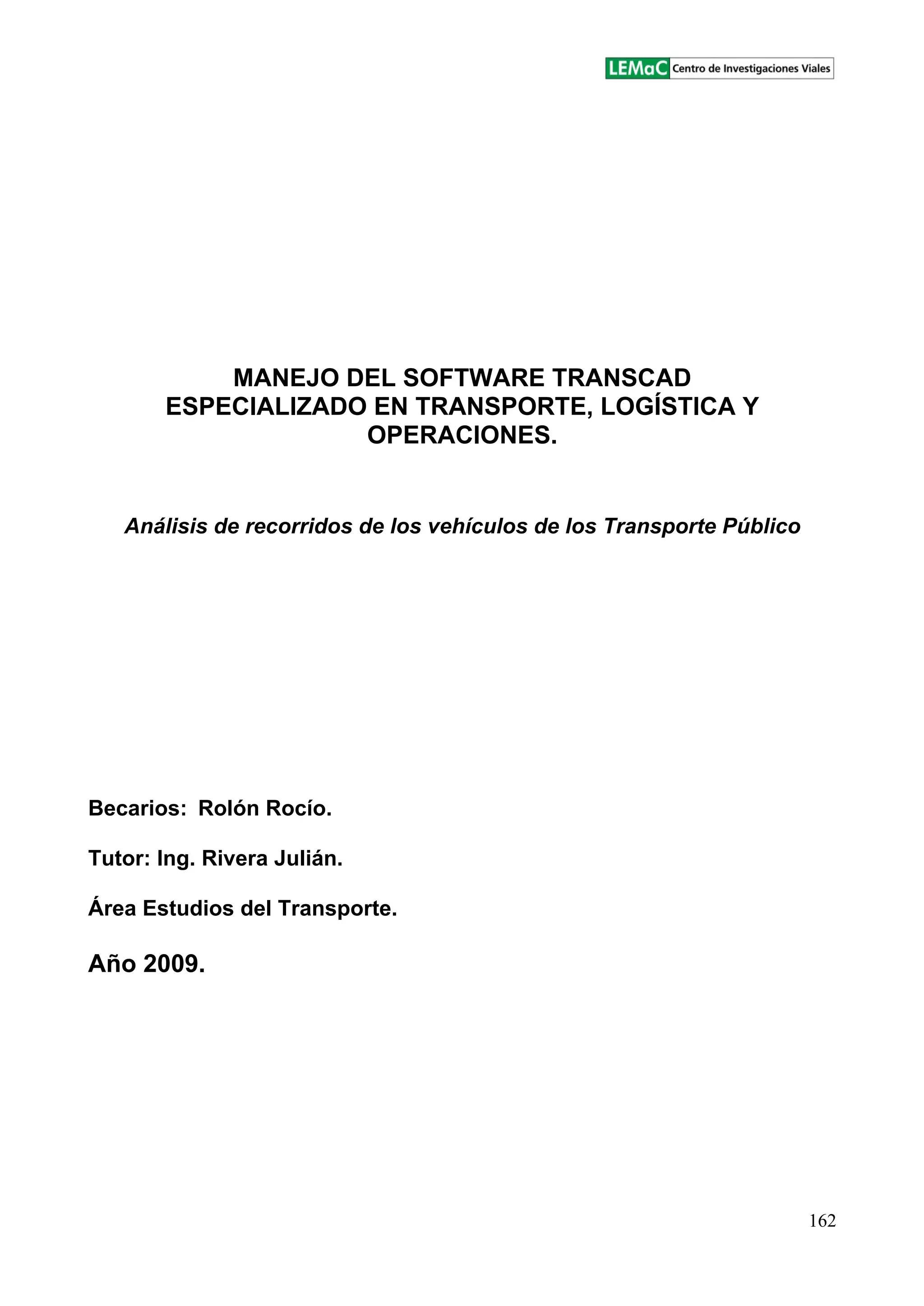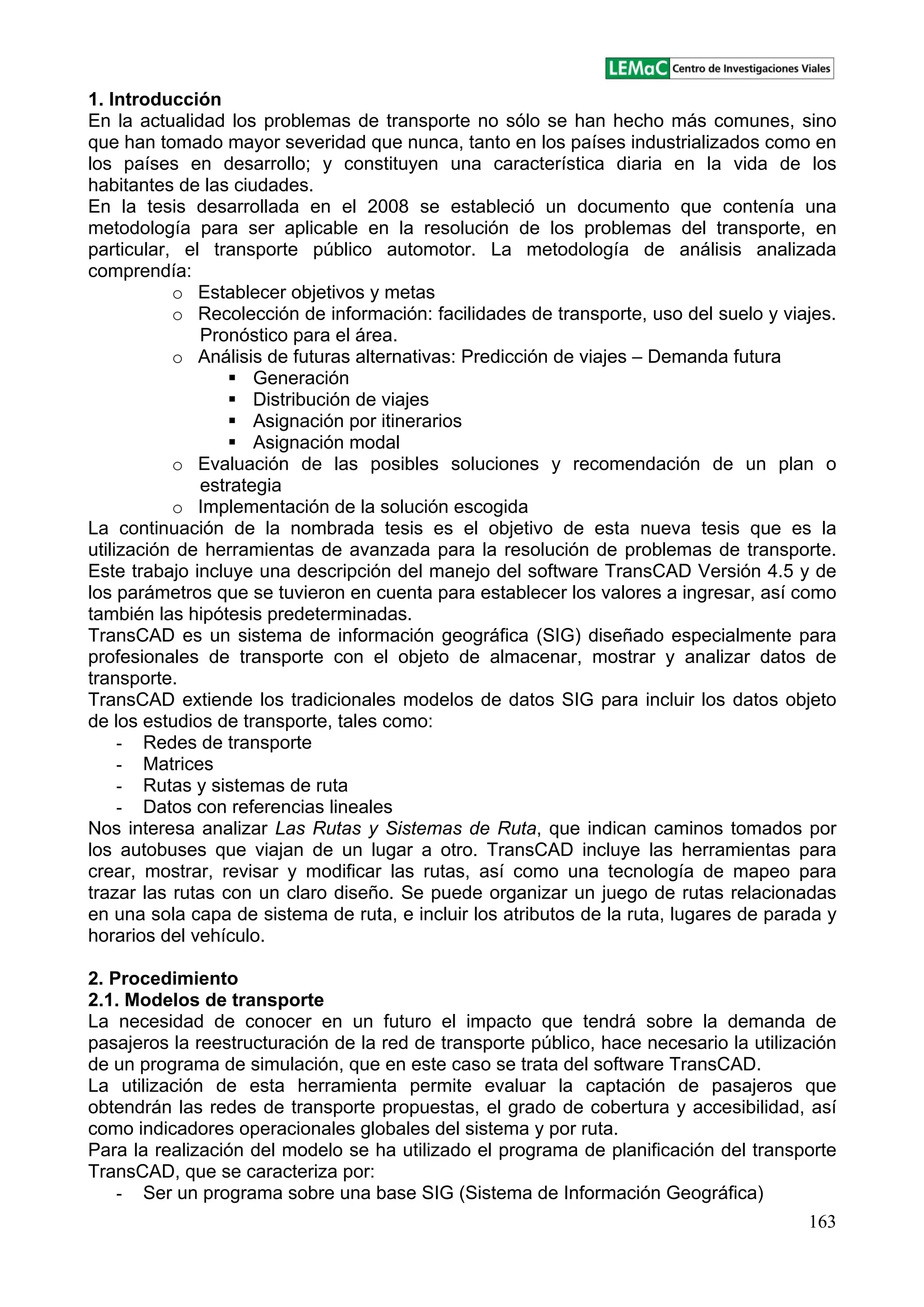El documento describe el uso del software TransCAD para analizar rutas de transporte público. Explica los pasos para crear un sistema de rutas en TransCAD, incluyendo la creación de paradas de buses, rutas y matrices origen-destino. Luego, compara dos posibles rutas entre dos puntos, analizando el tiempo y costo de cada ruta. Los resultados muestran que la Ruta 1 es más eficiente.