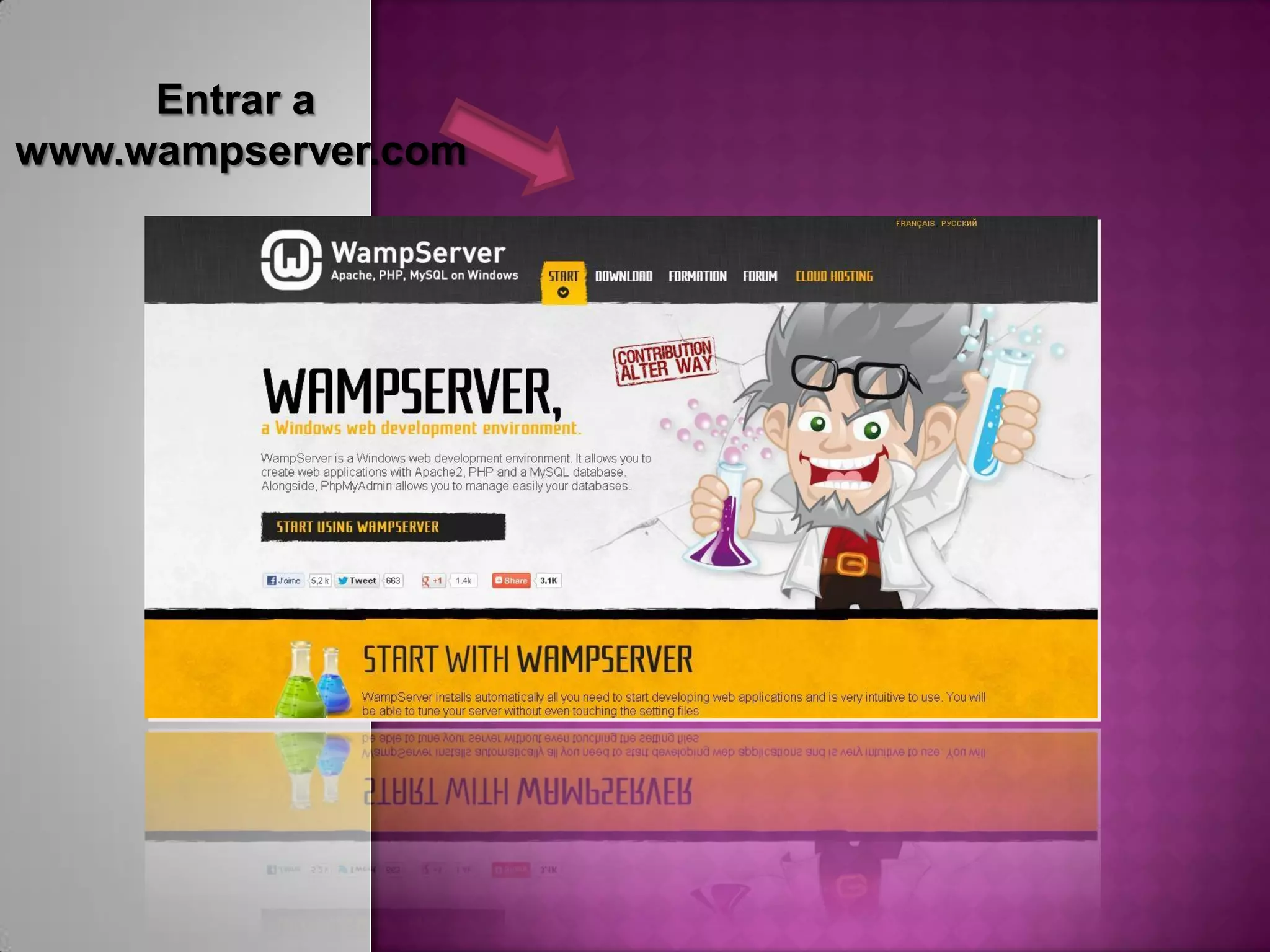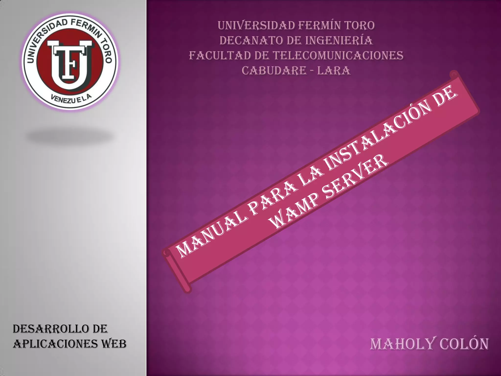 Este documento proporciona instrucciones para instalar WampServer, un servidor web local para desarrollo de aplicaciones web. Explica cómo descargar e instalar el software, configurar las opciones de instalación, iniciar y detener los servicios de WampServer, y verificar que el servidor esté funcionando correctamente.
