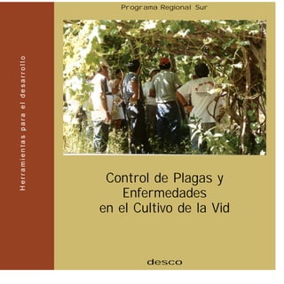Este documento describe el cultivo de la vid en la región de Caravelí, Perú. Explica que la mayoría de las plantaciones utilizan variedades tradicionales como "negra caravileña" y moscatel. También identifica problemas comunes como altas densidades de plantación, riego inadecuado, podas insuficientes y uso excesivo de agroquímicos. El rendimiento promedio es de 5,000 kg/ha, pero puede aumentar a 11,000 kg/ha con mejores prácticas.