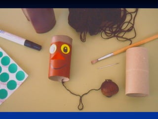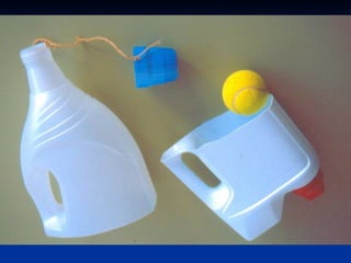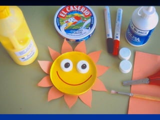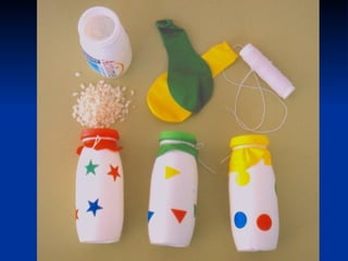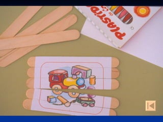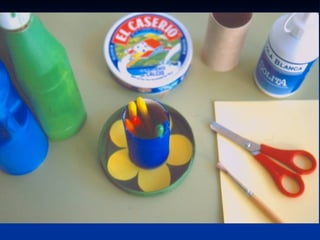 Este documento proporciona referencias bibliográficas sobre el uso de manualidades y materiales de desecho en la educación infantil, incluyendo el libro "Juegos estupendos con juguetes improvisados" de Bárbara Sher, publicado en 1996 por Ediciones Martínez Roca en Barcelona.