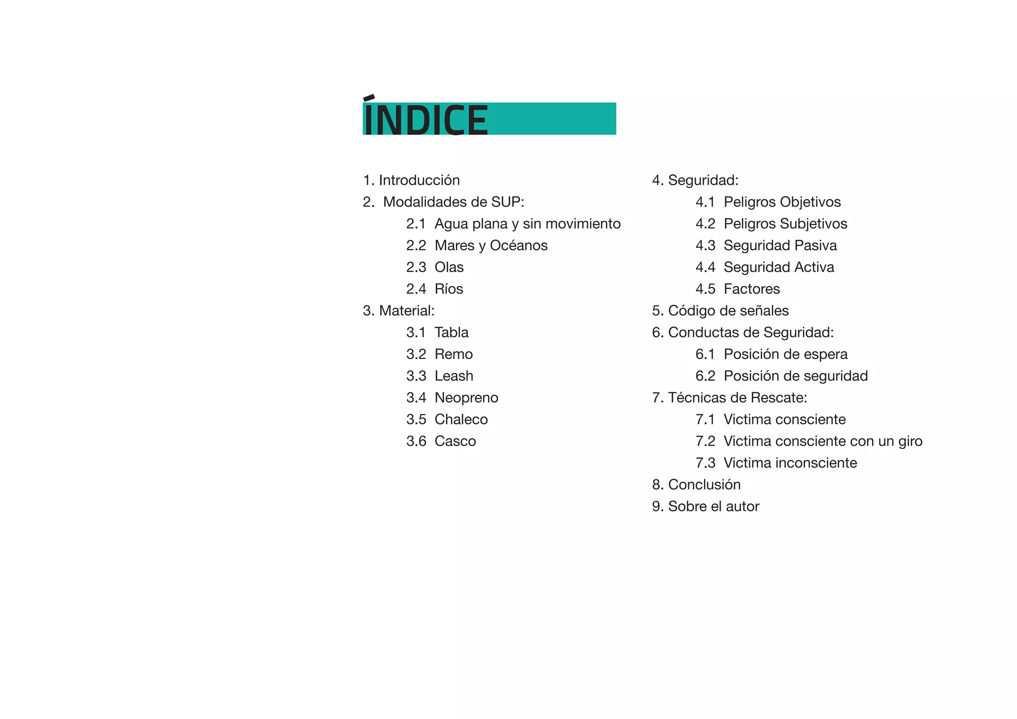 Este documento resume las modalidades, materiales, seguridad y técnicas del stand up paddle (SUP). Describe las diferentes modalidades como agua plana, mares, océanos y ríos. Explica los materiales necesarios como tablas, remos y trajes de neopreno. Detalla los peligros y medidas de seguridad pasiva y activa. También incluye un código de señales, conductas de seguridad y técnicas de rescate para practicantes de SUP.