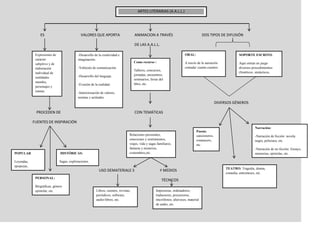 El documento describe las artes literarias y los valores que aportan, como el desarrollo de la creatividad, la imaginación y el lenguaje. También explica que las artes literarias sirven como vehículo de comunicación y evasión de la realidad, además de fomentar la interiorización de valores. Se detalla que existen dos tipos principales de difusión de las artes literarias: oral, a través de cuentacuentos y eventos, y soporte escrito mediante diversos géneros como poesía, narración,