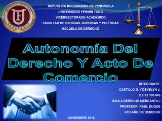 Este documento resume las características fundamentales del derecho mercantil. Explica que el derecho mercantil es especial aunque se relaciona con el derecho civil, y que su objetivo es regular los actos de comercio con el fin de obtener lucro. También clasifica las teorías del derecho mercantil, los actos de comercio, y los principios de los actos de comercio, como la mediación, producción y circulación de bienes o servicios.