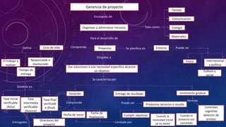 La gerencia de proyectos se encarga de organizar y administrar recursos como tiempo, comunicación, energía y materiales para el desarrollo de proyectos. La gerencia de proyectos define el trabajo a realizar, el tiempo de entrega y quienes son los responsables e involucrados en el proyecto. Un proyecto se caracteriza por tener una duración determinada, entregar un resultado e ir incrementando gradualmente hasta alcanzar un objetivo específico.