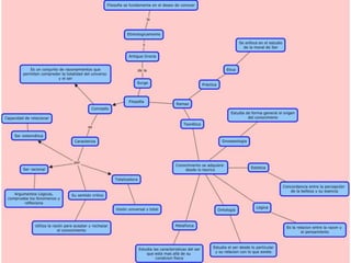 El documento presenta un mapa conceptual sobre las consideraciones de la filosofía y sus métodos realizado por Eyilde Alvarado G. para la asignatura de Filosofía del derecho en la Universidad Fermín Toro. El mapa conceptual analiza los principales conceptos y métodos de la filosofía para comprender el derecho.