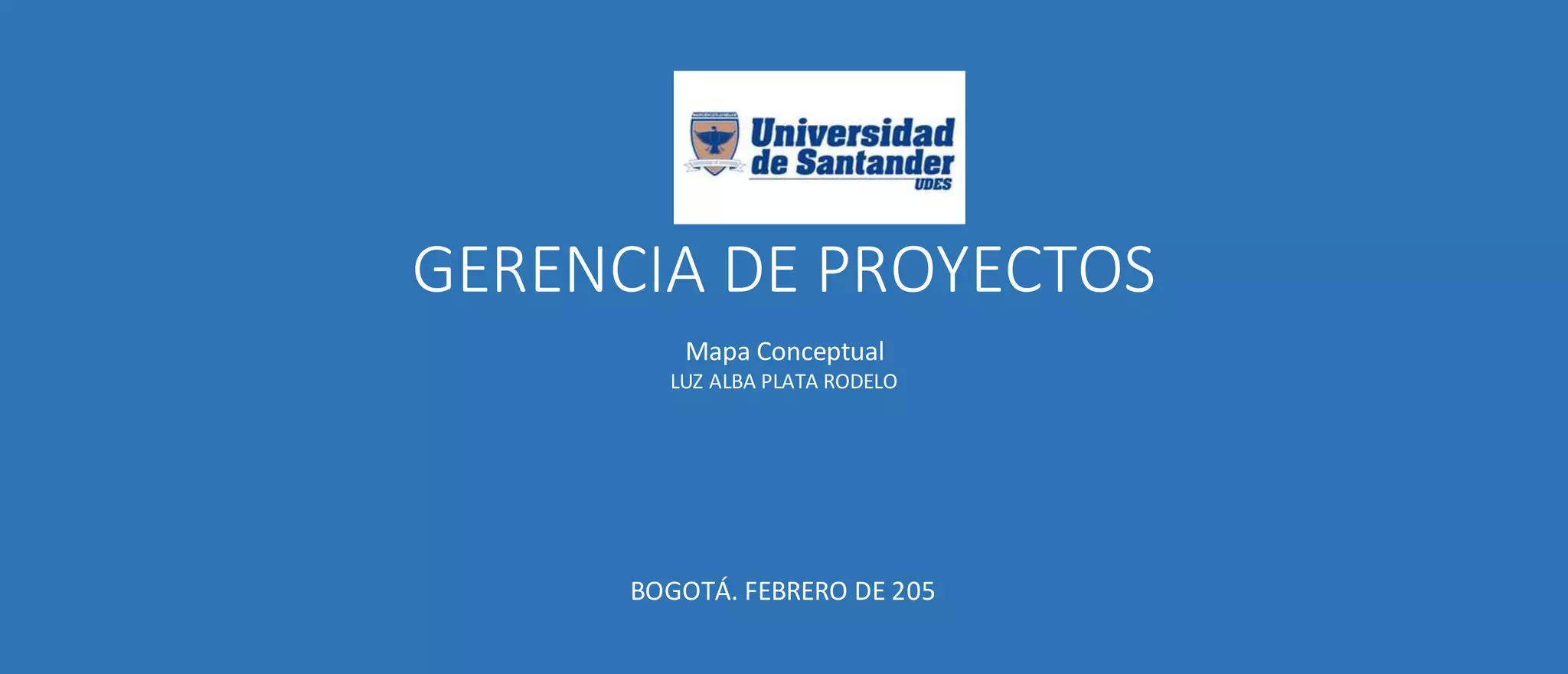 La gerencia de proyectos es un mapa conceptual que describe los conceptos clave de la gestión de proyectos en 3 oraciones o menos. Fue creado por Luz Alba Plata Rodelo en Bogotá, Colombia en febrero de 205. El mapa conceptual provee una visión general de los principios y herramientas esenciales para administrar proyectos de manera efectiva.