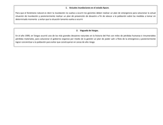 Este documento trata sobre la educación para la prevención de desastres naturales. Explica que un desastre natural es un evento adverso causado por fenómenos naturales como inundaciones o deslaves que pueden ocasionar daños sociales, ambientales y económicos significativos, incluida la pérdida de vidas y bienes materiales. La prevención de desastres requiere actividades de gestión, conservación y educación para comprender los riesgos, adquirir habilidades y tomar responsabilidad ante determinados fenómenos.
