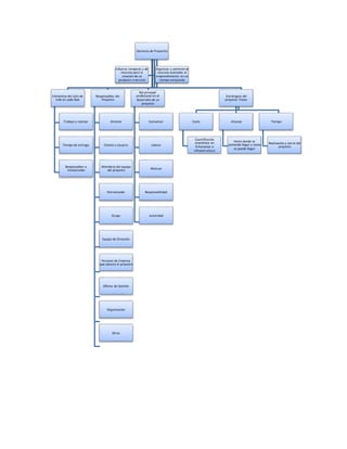 El documento detalla los elementos del ciclo de vida de la gerencia de proyectos, incluyendo las responsabilidades de los involucrados como el director, cliente, y miembros del equipo. Se abordan las estrategias del proyecto, como la cuantificación de costos, alcance, tiempo de realización y cierre. Además, se enfatiza la importancia de la organización y administración de recursos para el éxito del emprendimiento.