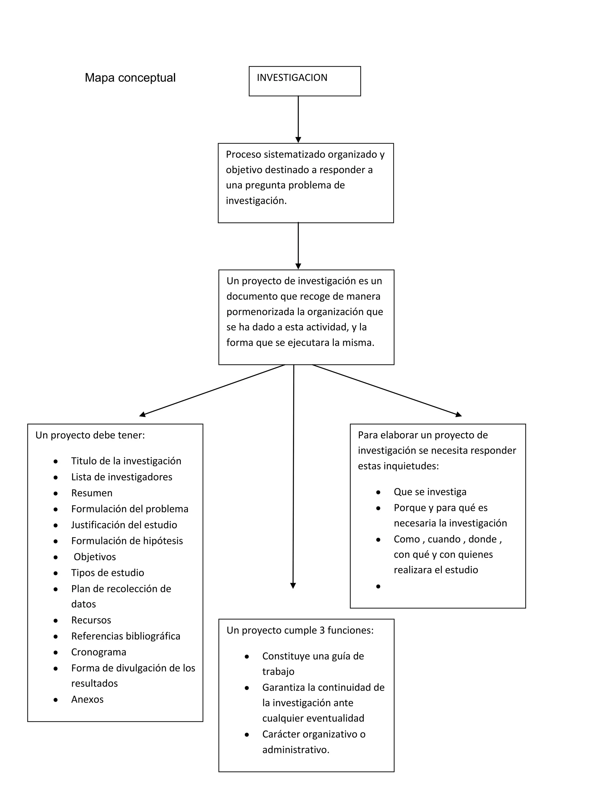 Un proyecto de investigación cumple 3 funciones: ser una guía de trabajo, garantizar la continuidad de la investigación ante eventualidades, y tener un carácter organizativo. Un proyecto debe incluir un título, investigadores, resumen, formulación del problema, justificación, hipótesis, objetivos, métodos de estudio, recolección de datos, recursos, referencias, cronograma, y forma de divulgar los resultados. Para elaborar un proyecto se necesita responder qué, por qué y para qué se investiga, cómo, cuándo, dónde, con qué y con