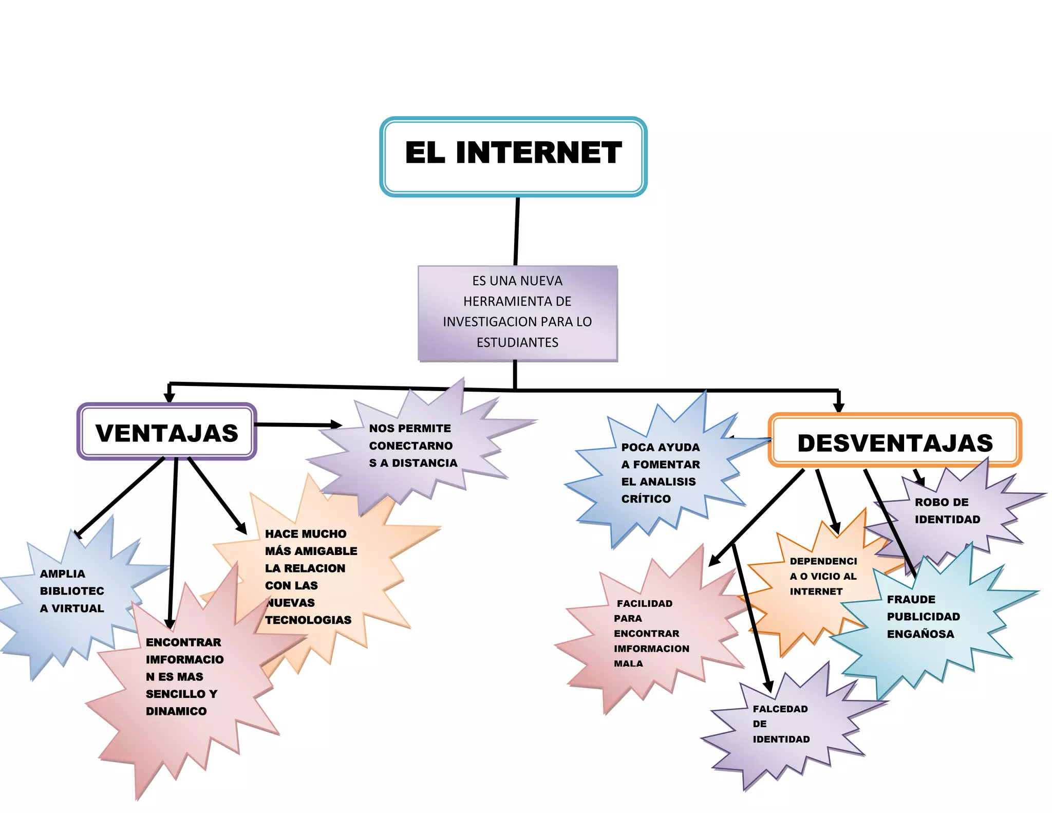 El documento describe las ventajas y desventajas del uso de Internet como herramienta de investigación para estudiantes. Entre las ventajas se encuentran que permite acceder a una amplia biblioteca virtual desde cualquier lugar, encontrar información de forma más sencilla y dinámica, y hacer más amigable la relación con nuevas tecnologías. Algunas desventajas son la poca ayuda para fomentar el análisis crítico, la dependencia o vicio a Internet, y problemas relacionados con robos de identidad, fraude y publicidad engañosa