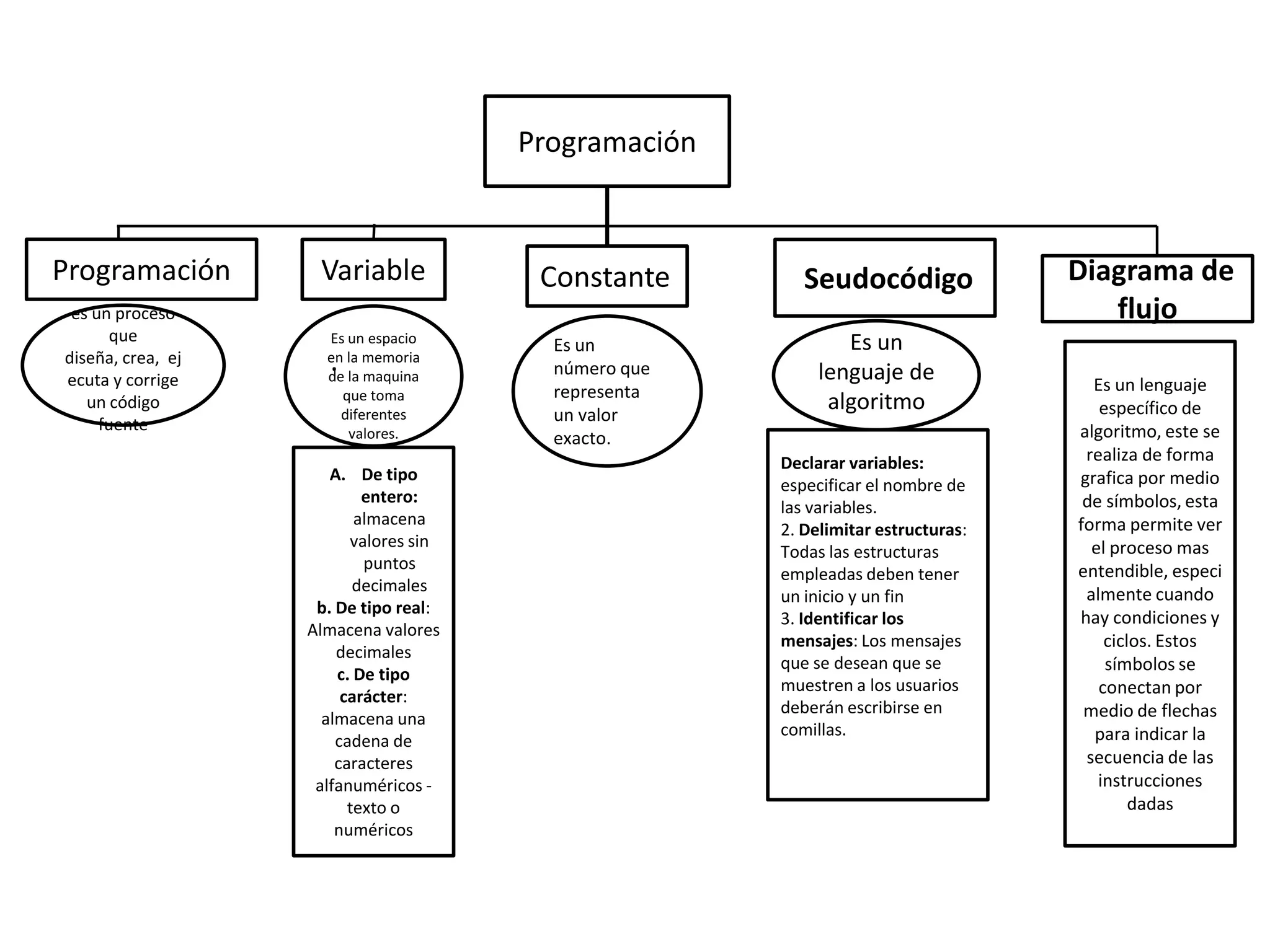 La programación es el proceso de diseñar, crear, ejecutar y corregir código fuente mediante el uso de variables, constantes, seudocódigo y diagramas de flujo. Las variables almacenan valores en la memoria de la máquina, las constantes representan valores fijos, el seudocódigo es un lenguaje de algoritmos y los diagramas de flujo muestran el proceso de forma gráfica usando símbolos y flechas.