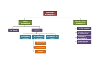 El documento presenta un mapa conceptual sobre la ingeniería de requerimientos en el contexto de la educación universitaria en Venezuela. Se destacan los tipos de requerimientos, incluyendo funcionales, no funcionales y del dominio del producto. También se abordan etapas clave como el estudio de viabilidad, análisis y validación de requerimientos.