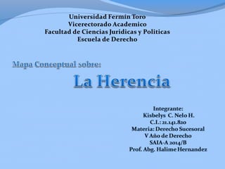 El documento describe los dos aspectos de la herencia: el aspecto subjetivo que se refiere a la subrogación del heredero en las obligaciones del causante, y el aspecto objetivo que se refiere al patrimonio del difunto, incluyendo cosas, derechos y obligaciones. Luego explica que la aceptación de la herencia puede ser expresa o tácita, debe cumplir con los requisitos de un acto jurídico válido, ocurrir después del fallecimiento, ser total e incondicional, e irrevocable con efectos retroactivos