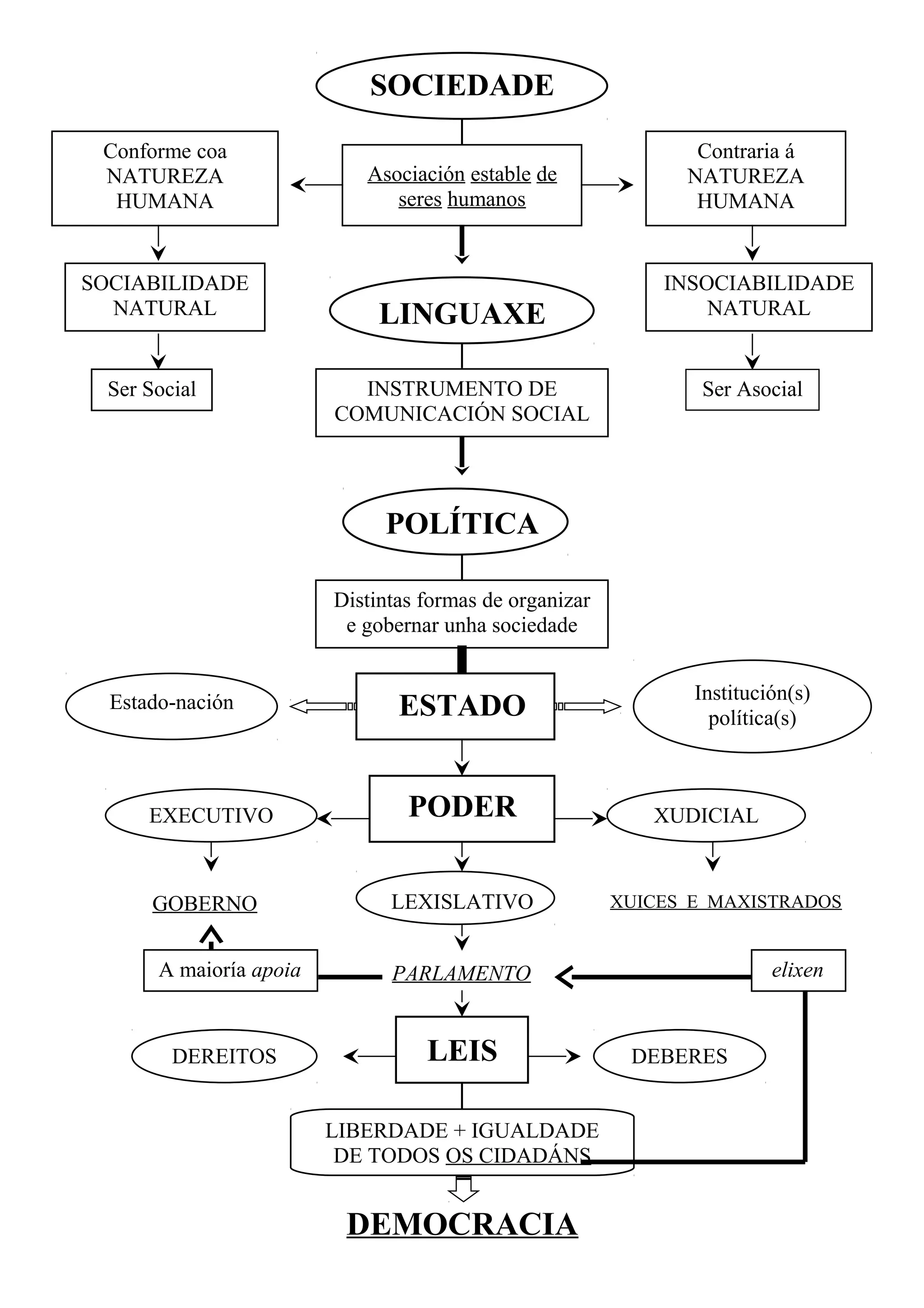 El documento habla sobre las diferentes formas de organizar y gobernar una sociedad. Menciona que la asociación estable de seres humanos es conforme a la naturaleza humana y su sociabilidad natural, lo que lleva a la creación de un estado-nación e instituciones políticas que protegen la libertad e igualdad de todos los ciudadanos a través de leyes democráticas y los poderes ejecutivo, legislativo y judicial.