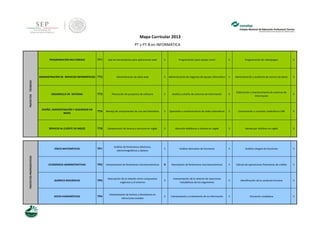 El documento presenta el mapa curricular de un programa de informática, el cual incluye 5 trayectos técnicos y 4 trayectos propedéuticos. El mapa detalla las asignaturas de cada semestre y las horas dedicadas a cada una, con un total de 210 horas para los núcleos de formación básica y profesional.