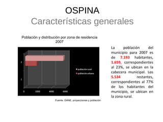 1) El municipio de Ospina tiene una población de aproximadamente 7,193 habitantes, la mayoría de los cuales viven en zonas rurales.