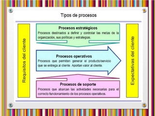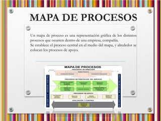 Este documento trata sobre el control de calidad en procesos inorgánicos, destacando la importancia de los mapas de procesos para optimizar la producción y mejorar la calidad. Se describen distintos tipos de procesos, incluyendo claves, estratégicos y de apoyo, así como las etapas del proceso de panificación. Además, se mencionan aspectos relacionados con la gestión administrativa y la satisfacción del cliente.