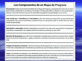 1. Los mapas de progreso describen los niveles de aprendizaje esperados en diferentes áreas curriculares desde 1° básico hasta 4° medio, con el fin de monitorear el progreso de los estudiantes.