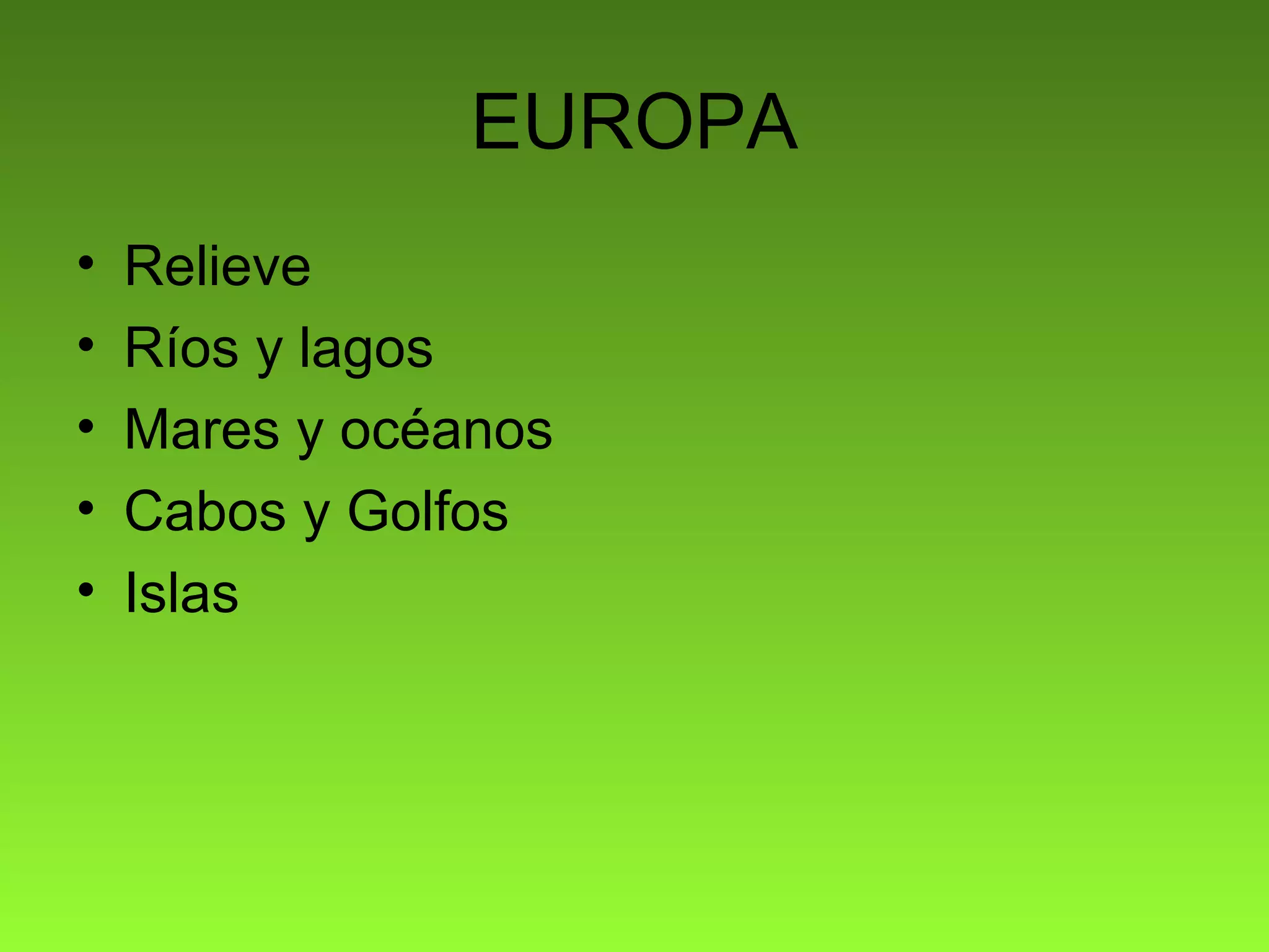 Europa tiene varias características geográficas importantes como montañas, ríos, mares y océanos. Las montañas incluyen los Alpes, los Pirineos, los Cárpatos y los Balcanes. Los principales ríos son el Danubio, el Rin y el Volga. Europa está bordeada por el océano Atlántico al oeste y el mar Mediterráneo al sur, y también contiene mares como el mar Báltico y el mar Negro.