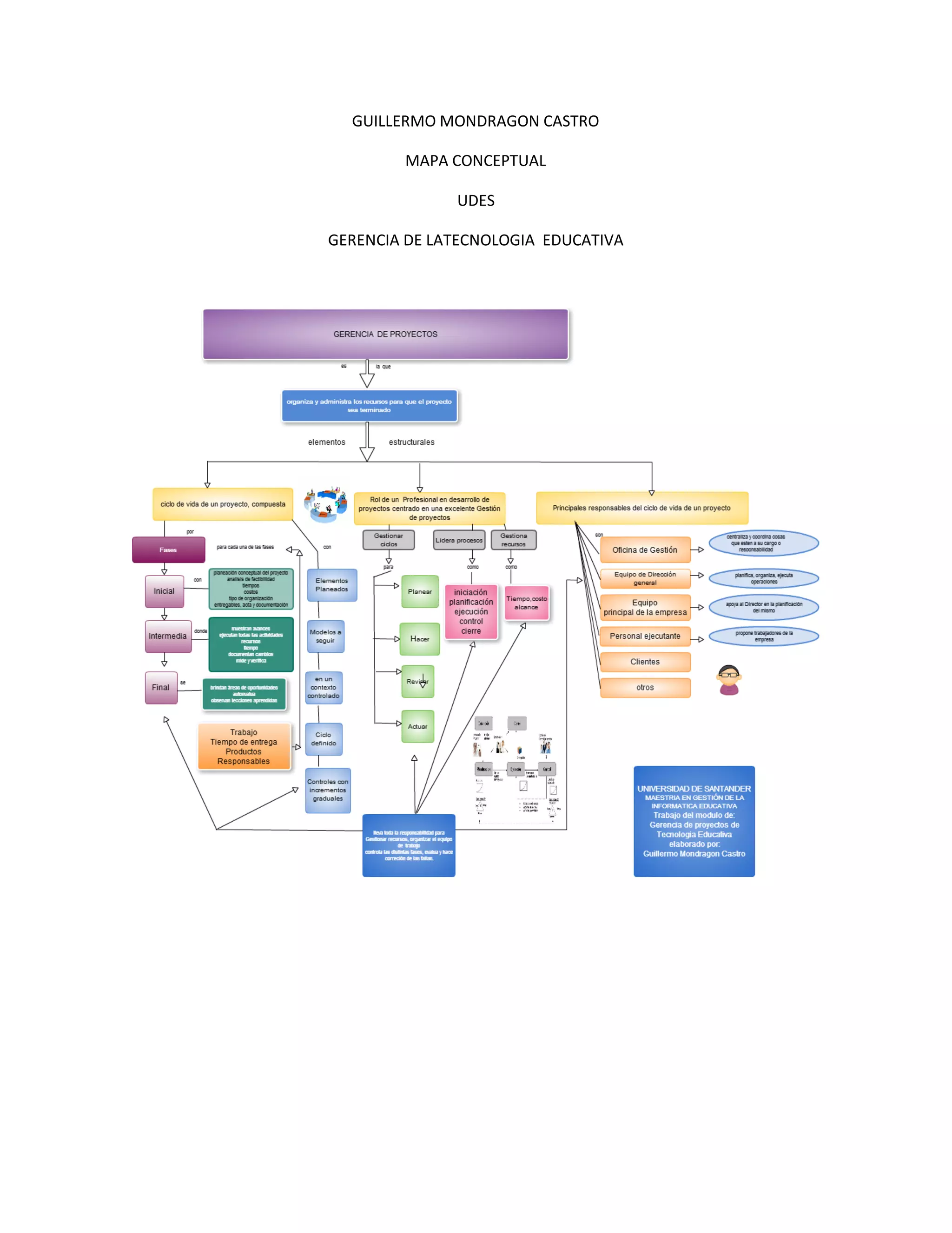 Guillermo Mondragón Castro creó un mapa conceptual para la Universidad de San Buenaventura sobre la gerencia de la tecnología educativa. El mapa conceptual proporciona una visión general de alto nivel sobre cómo la universidad gestiona el uso de la tecnología en la educación.