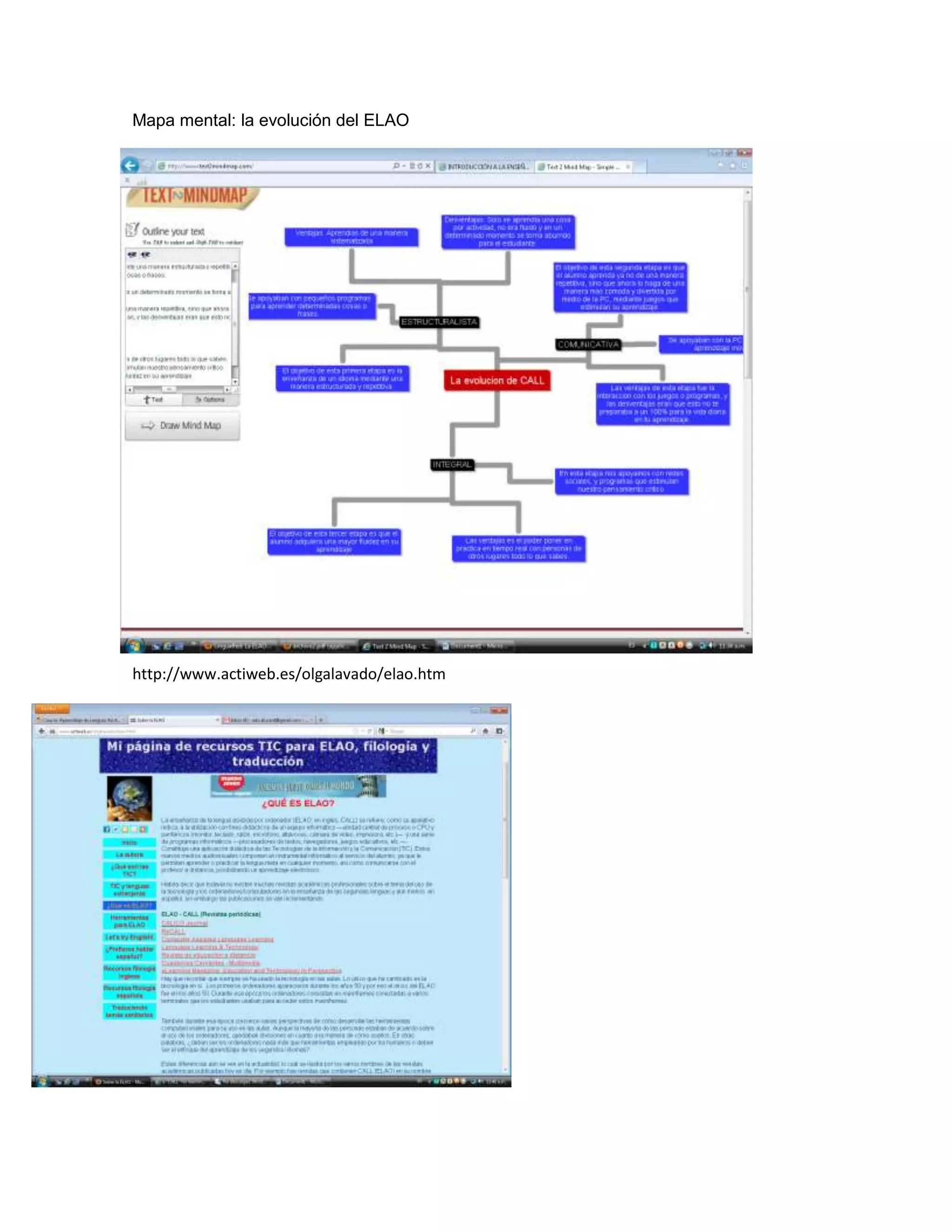 El mapa mental muestra la evolución del ELAO (Espacio de Lectura y Aprendizaje Online) desde sus inicios en los años 90 como un repositorio de recursos educativos hasta convertirse en la actualidad en un entorno de aprendizaje colaborativo y personalizado que permite la creación, publicación y uso compartido de contenidos educativos digitales de forma sencilla.