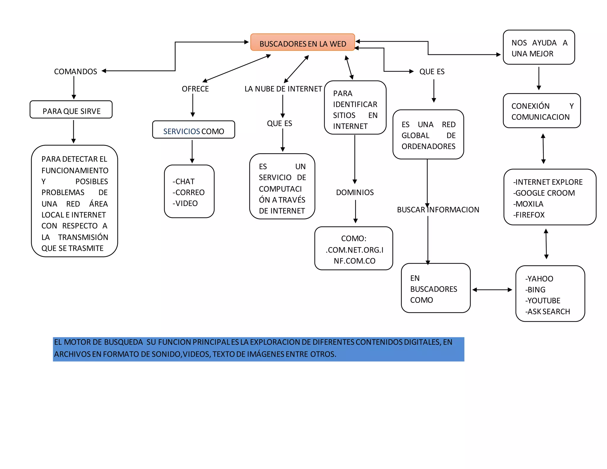 El documento habla sobre los motores de búsqueda y su función principal de explorar diferentes contenidos digitales como sonido, video, texto e imágenes a través de Internet. También menciona algunos comandos, dominios y buscadores en la web que ayudan a identificar sitios e Internet y a detectar posibles problemas en una red local o Internet. Finalmente, indica que Internet es una red global de ordenadores que ayuda a mejorar la conexión y comunicación entre usuarios.