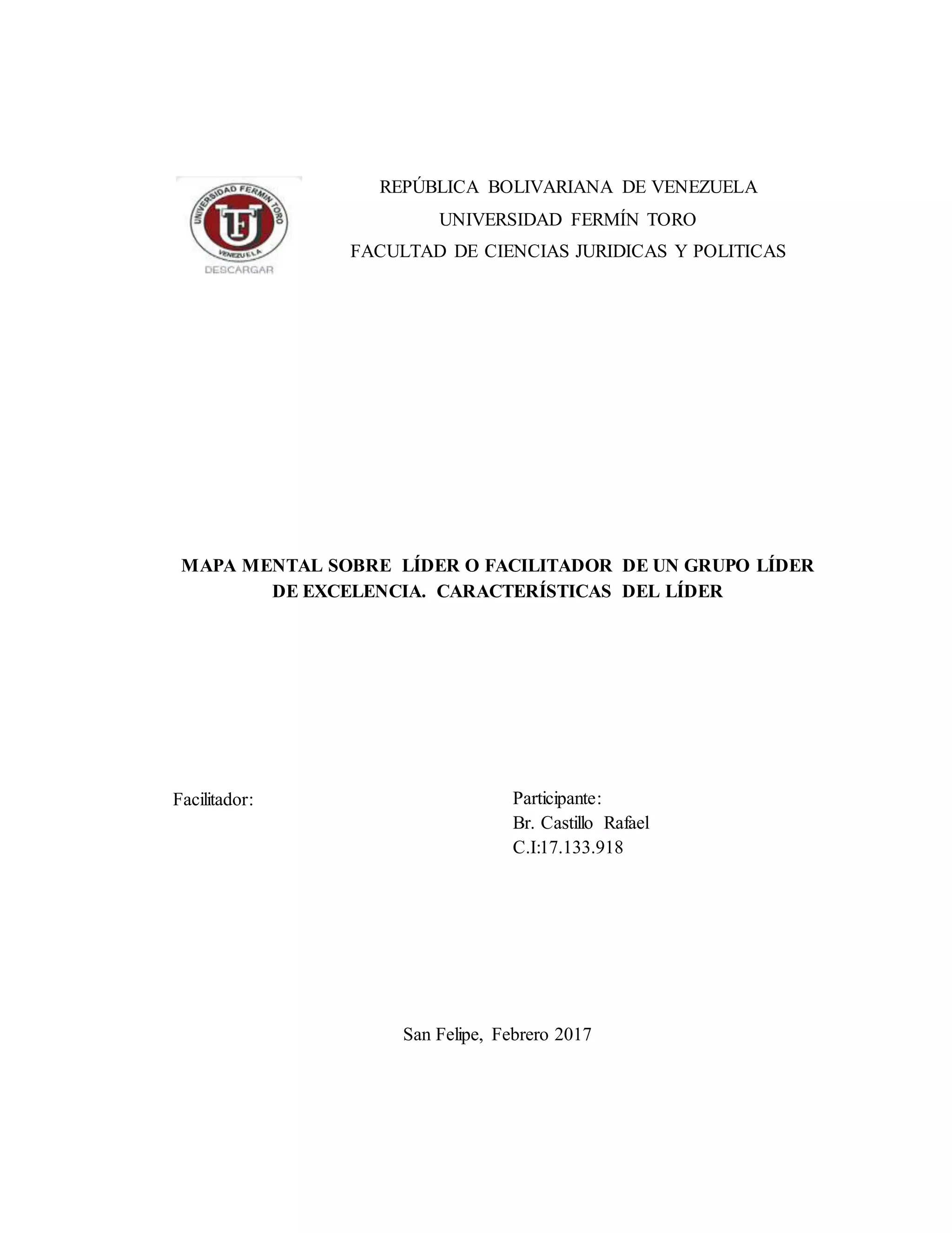 Este documento presenta un mapa mental sobre las características de un líder o facilitador de un grupo de excelencia. Incluye una bibliografía de tres fuentes que analizan el liderazgo dentro de organizaciones educativas y empresariales.