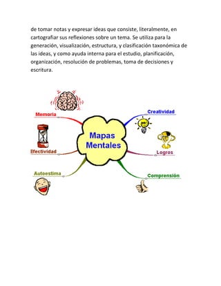 Un mapa conceptual es una representación gráfica del conocimiento que utiliza nodos para representar conceptos y enlaces para relacionarlos, mientras que un mapa mental es un diagrama que dispone radialmente palabras, ideas y otros conceptos alrededor de una palabra o idea central para extraer y memorizar información de manera lógica y creativa.