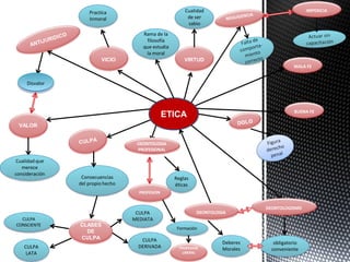 Este documento presenta una serie de definiciones clave relacionadas con la ética como virtud, vicio, valor, tipos de culpa, deontología y deberes morales. Explica que la ética estudia las normas morales y las relaciones humanas. Resalta que la ética no solo implica conocer conceptos sino practicar las virtudes. Concluye destacando la importancia de una ética profesional sólida en el ámbito laboral para promover valores como la honestidad y el bien común.