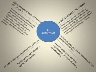 El documento trata sobre varios conceptos relacionados con la ética y los valores humanos. Define la autoestima como quererse a uno mismo y respetar a los demás. Explica que la baja autoestima puede provenir de las etiquetas que la sociedad impone desde la niñez. También explora conceptos como la moral, la libertad, la justicia, la tolerancia, la esperanza y la sabiduría.
