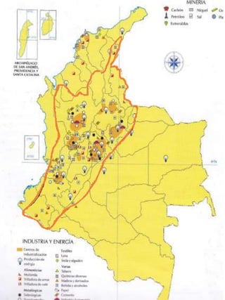 La región Andina de Colombia se extiende a lo largo de las tres cordilleras principales del país (Occidental, Central y Oriental) y posee una gran diversidad geográfica, climática, hídrica y de recursos naturales. La economía gira en torno a la agricultura (café, caña de azúcar, arroz), la minería (oro, plata, carbón) y la industria se concentra principalmente en las ciudades principales de la región. La población se localiza principalmente en los departamentos del Eje Cafetero, Ant